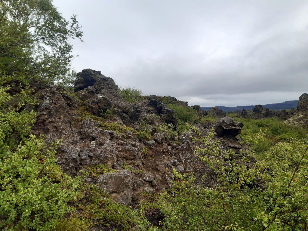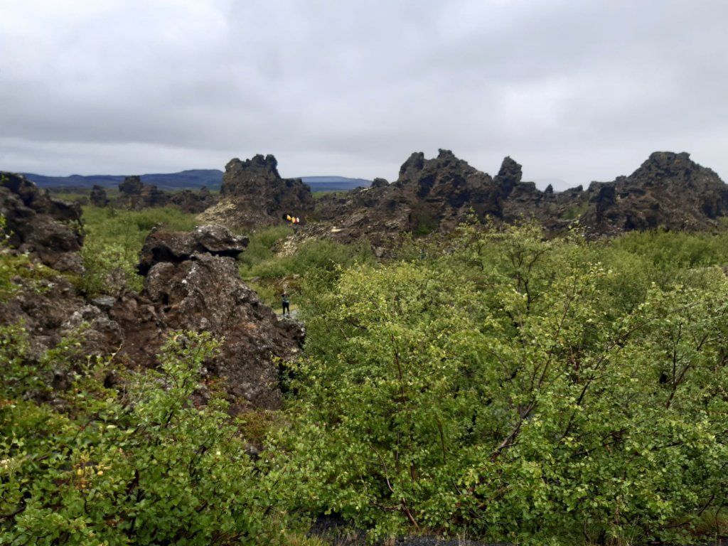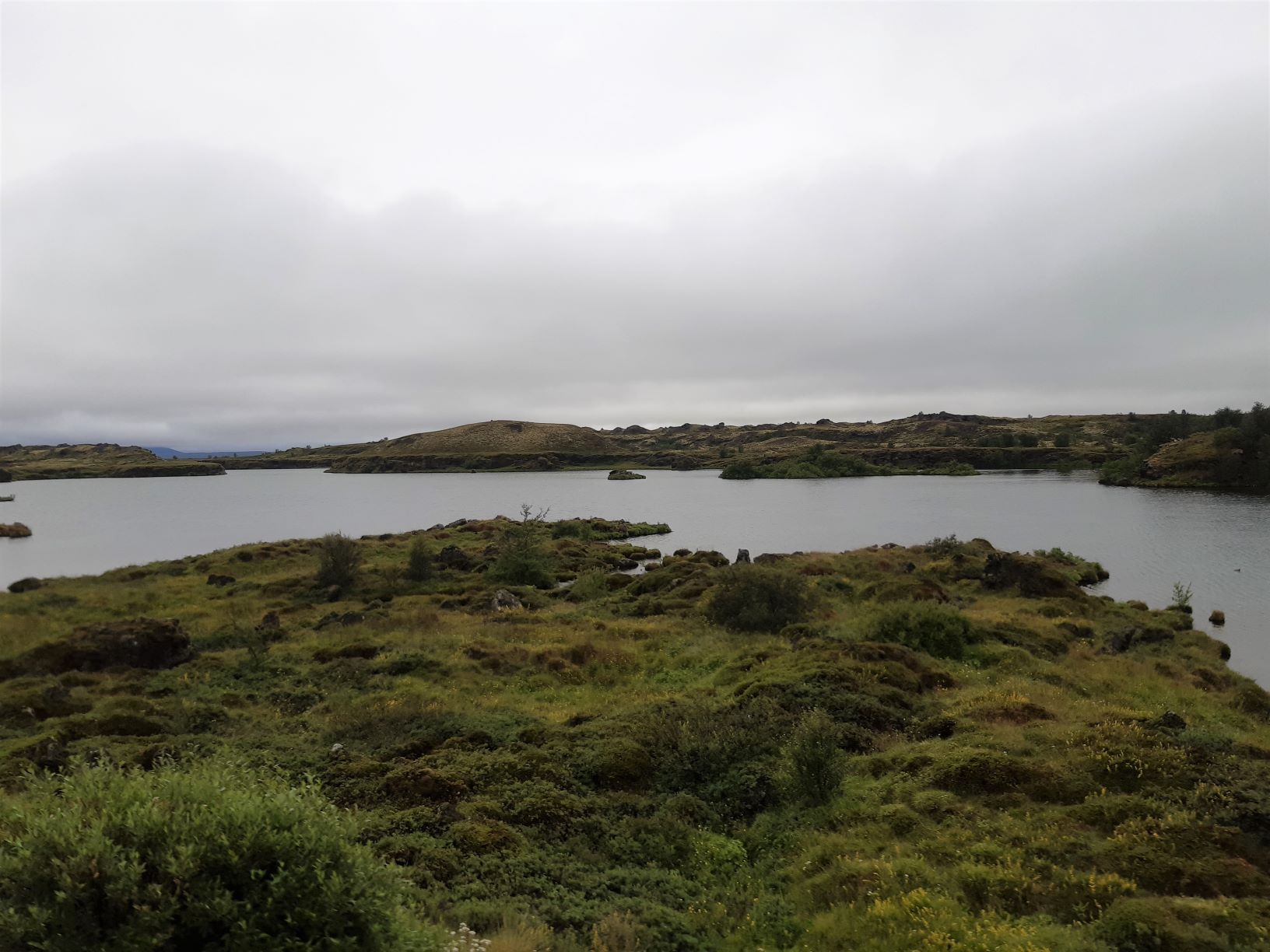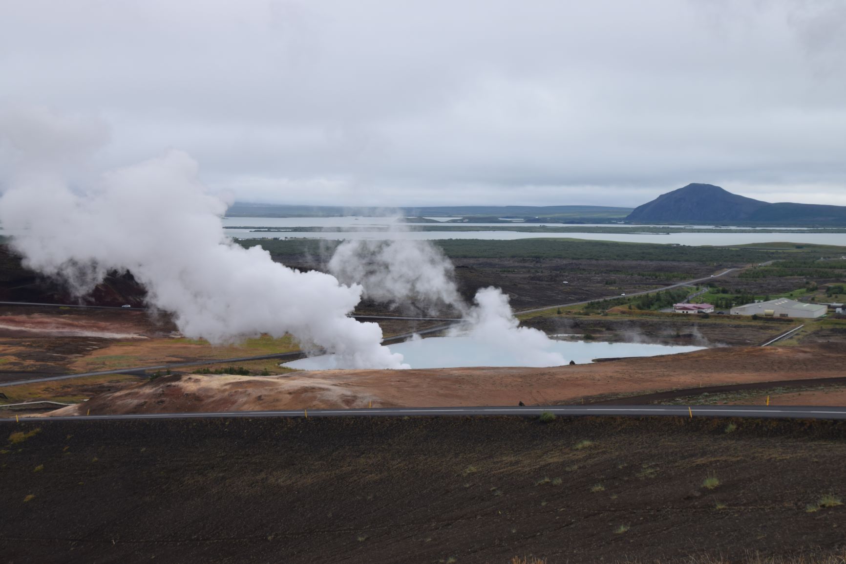 Wir sind am Myvatn (Mückensee) auf einem Campingplatz, weil unsere Solarzellen nur auf Sonne, nicht aber auf Regen reagieren. Seit gestern Mittag regnet es intensiv. Die Region birgt eine Vielfalt an Sehenswertem, aber bei trübem, feucht-kaltem Wetter braucht es Überwindung, im Freien herumzustoffeln. So beschränken wir uns auf ein Minimum und ziehen lediglich dahin, wo’s zischt, brodelt, dampft und nach Schwefel riecht. Man befindet sich hier auf dem Grabenbruchsystem zwischen der nordamerikanischen und eurasischen Kontinentalplatte.