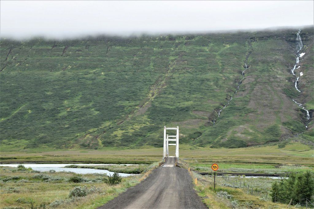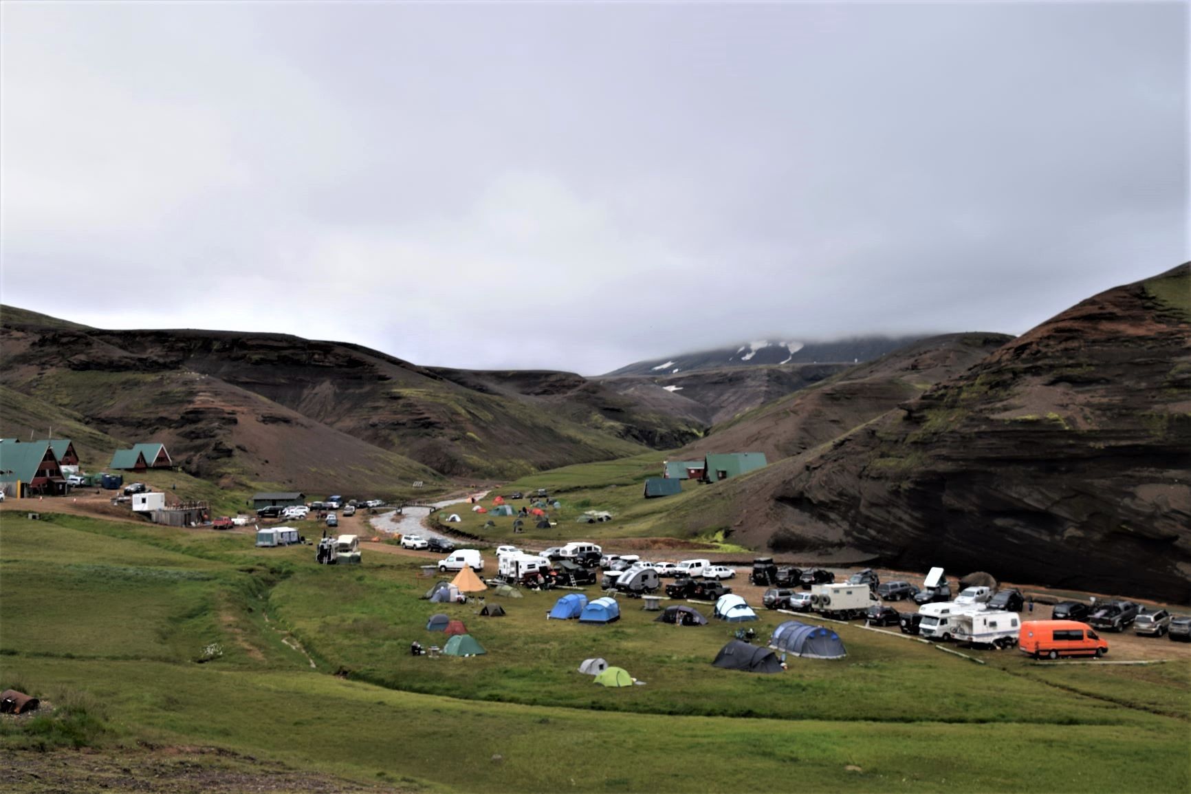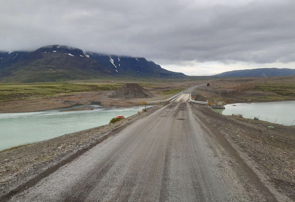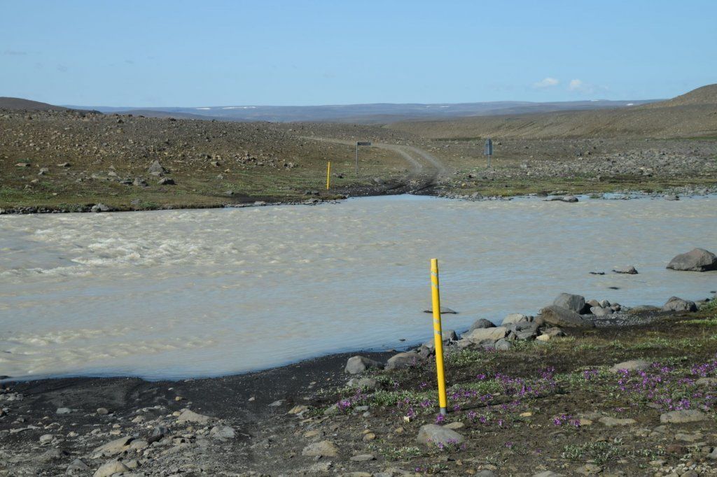 In Laugafell, einem kleinen Übernachtungsplatz mit Hot Pot für Liebhaber eines warmen Bades, erhalten wir die beruhigende Auskunft, dass die folgenden zwei Furten nur eine Wattiefe von ca. 40 cm haben. Das erspart mir nasse Füsse und Heinz meistert die zwei Flussdurchquerungen vorsichtig aber problemlos. Kurz vor dem Tagesziel wird die Strasse sogar richtig gut. Trotzdem erreichen wir Varmahlid später als uns lieb ist.