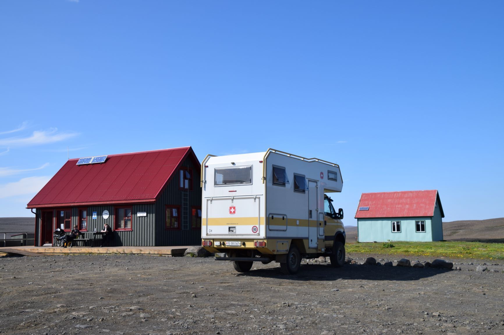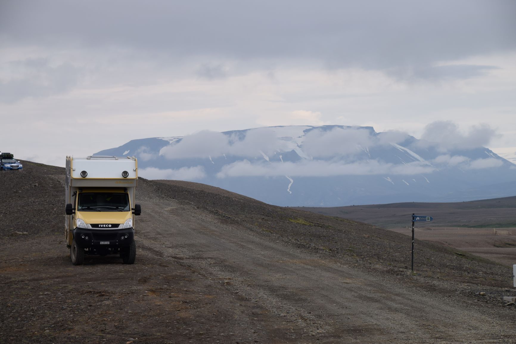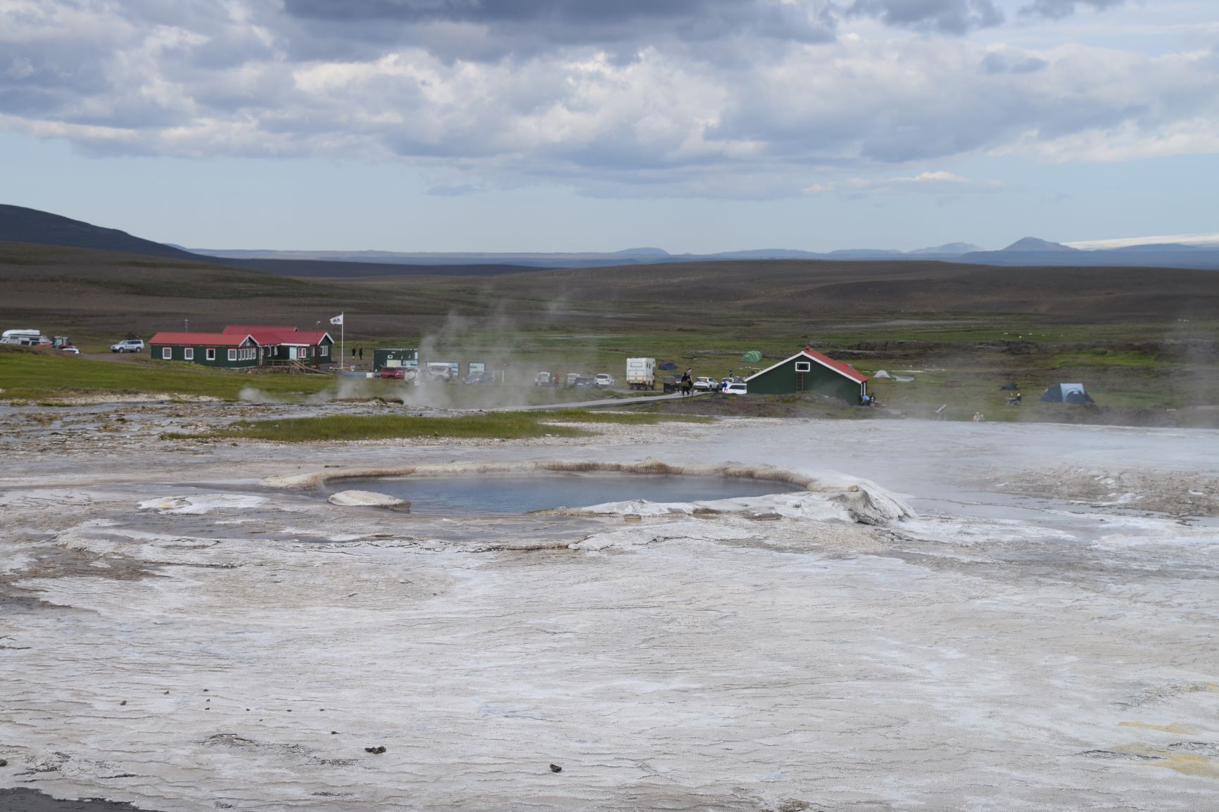 Highlights dieser Tagesetappe sind wieder die endlose Weite, die Landschaft - eine Kies- und Lavawüste - und die Berge und Gletscher am Horizont. Wir kommen in die Gegend des Langjökull und des Hofsjökull, dem zweit- und drittgrössten Gletscher Islands. In Hveravellir besuchen wir des Teufels Küche: Rund 20 Quellen blubbern und brodeln hier. Zum Übernachten hat es uns allerdings zu viel Betrieb, wir fahren noch ein Stück weiter und finden an einem einsamen See ein Plätzchen nach unserem Gusto.