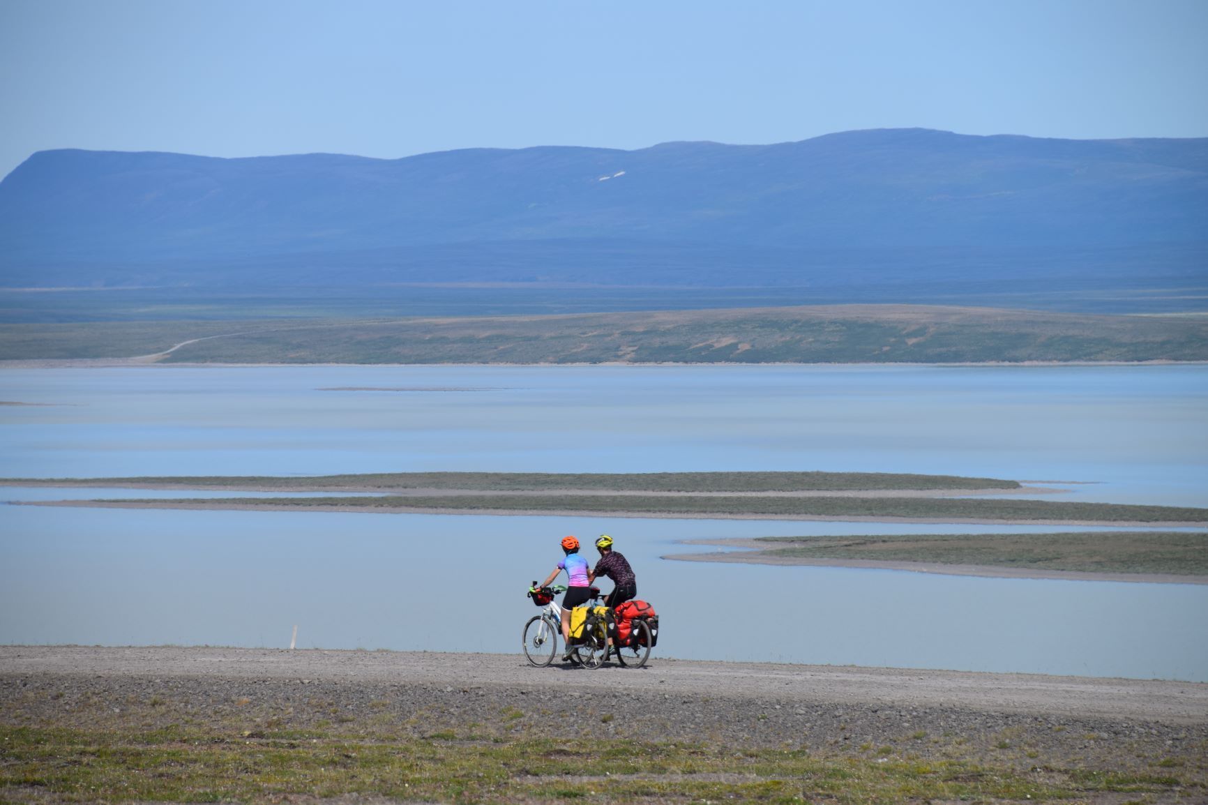 Die 35 ist auch am nächsten Tag kein Kuchenstück. Es rüttelt und schüttelt, die vielen Löcher und Querrillen verhindern ein zügiges Vorankommen. Für Heinz ist es Knochenarbeit, derweil ich die fantastische Weitsicht mit den Bergen und Gletschern im Hintergrund geniesse.