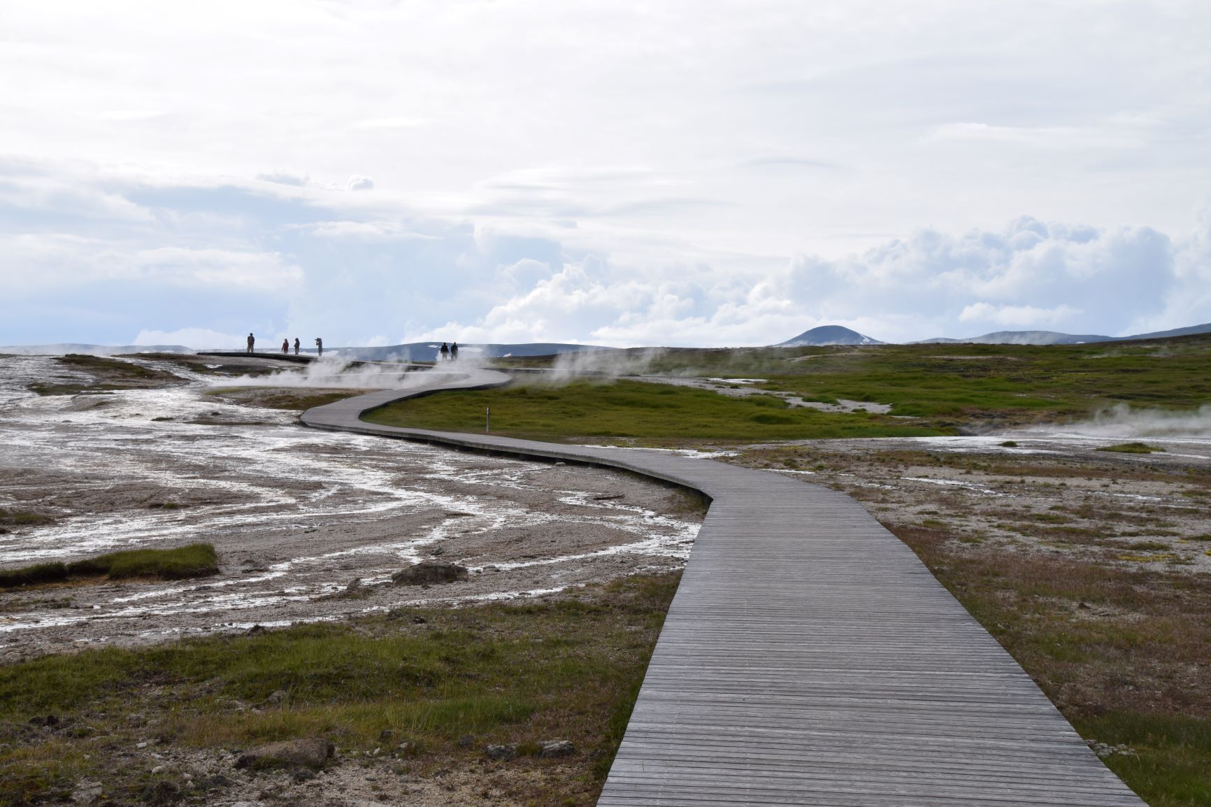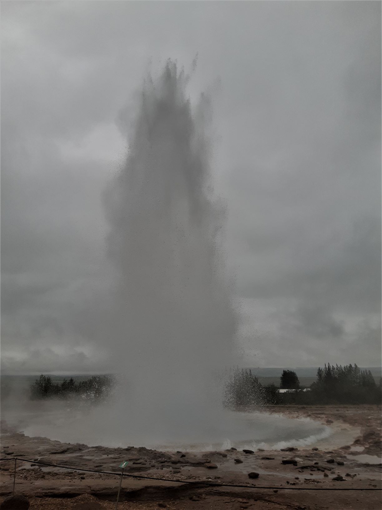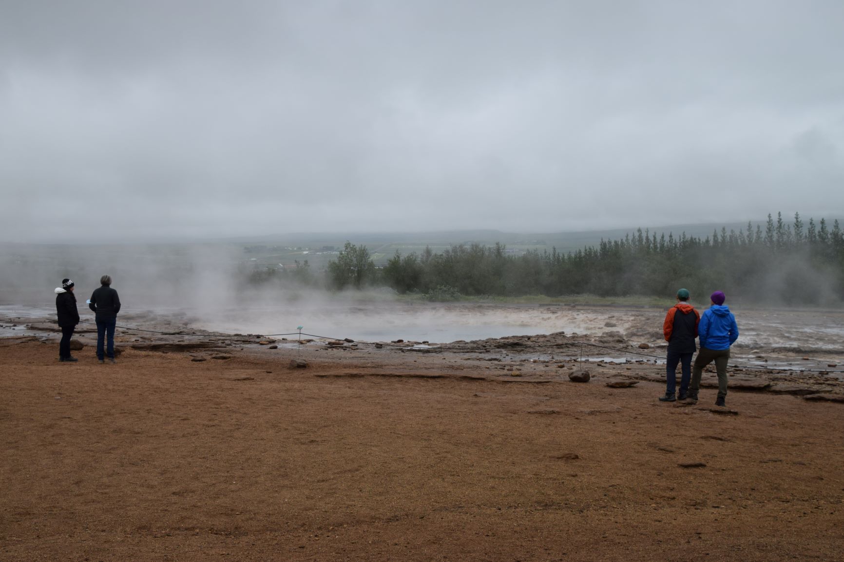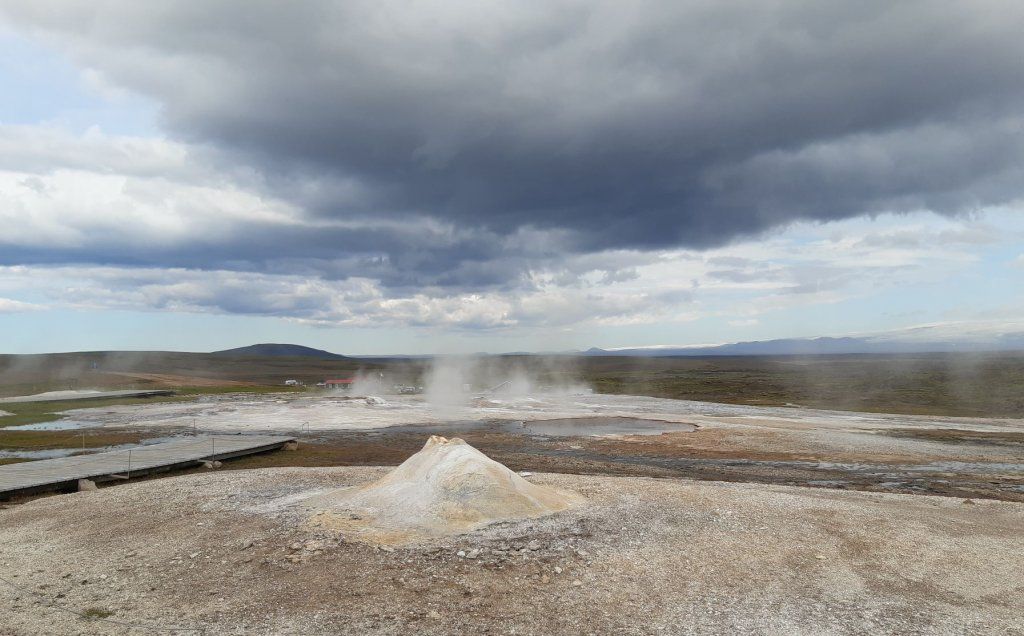 Am frühen Morgen des 2. August holen wir den gestern verpassten Nationalfeiertag nach. Noch vor den Touristen sind wir beim Platz der berühmten Geysire. Da kocht, brodelt, dampft und schwefelt es. Der Grosse Geysir hat sich zwar zur Ruhe gelegt, aber die Hinterlassenschaft aus seiner Aktivzeit, ein grosses Becken mit faszinierenden Sinterablagerungen, ist bemerkenswert. Der Geysir Strokkur hingegen ist fleissig und schiesst alle paar Minuten seine Fontäne in die Luft, womit wir beim 1. August angelangt sind. Es muss ja nicht immer ein Vulkan sein, obwohl es solche in Island zur Genüge hätte!