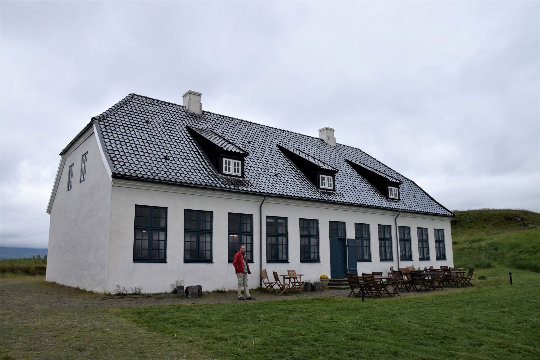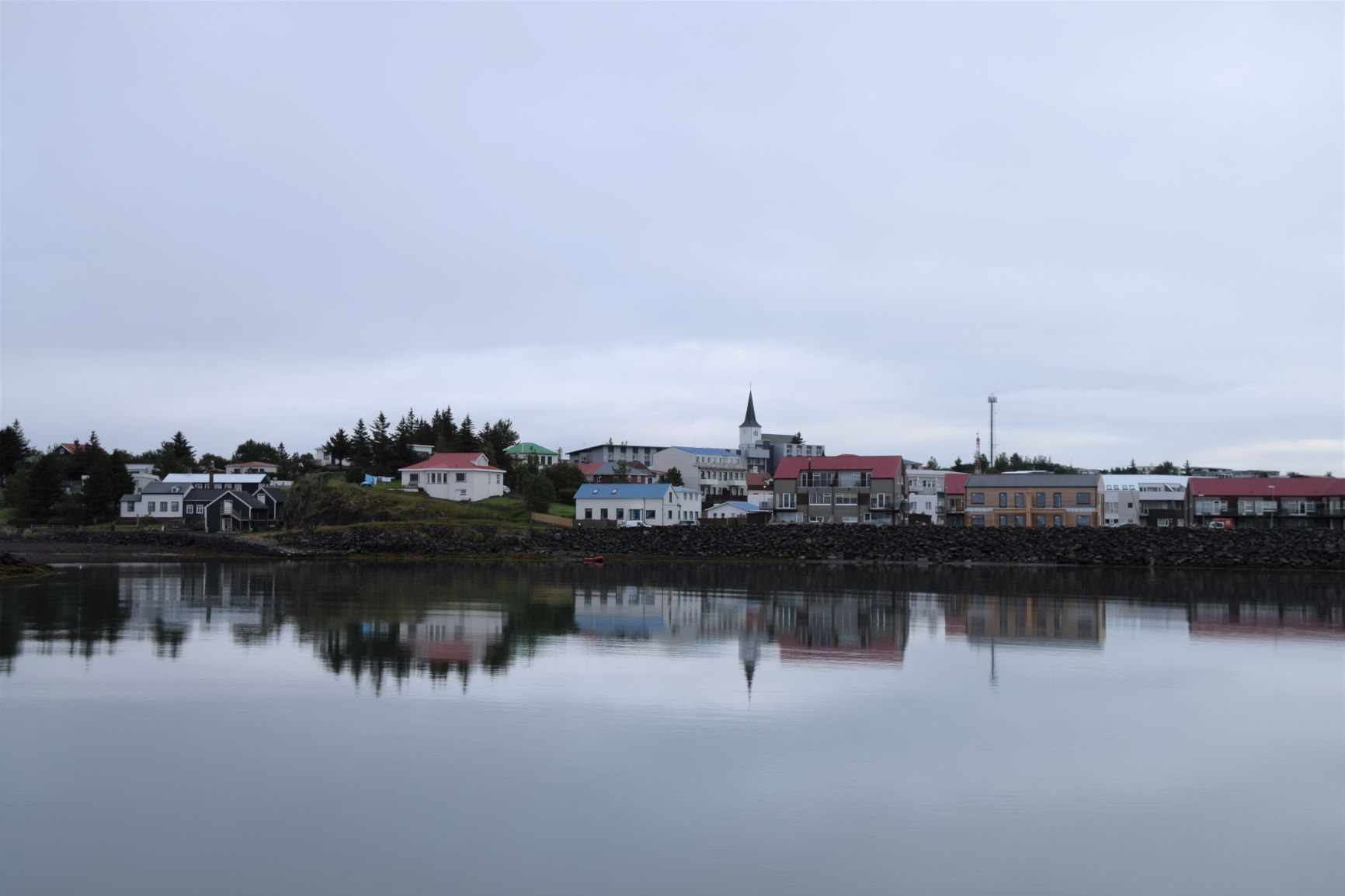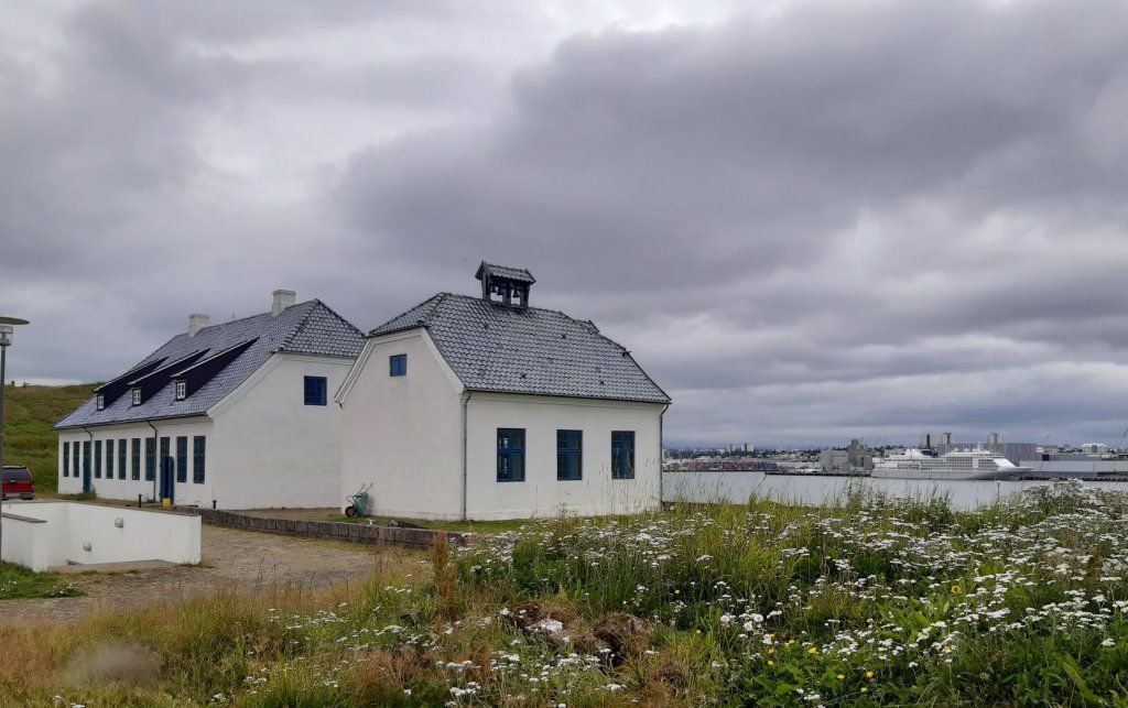 Nach dem Besuch des interessanten Besiedlungsmuseums fahren mit einem kleinen Schiff hinüber zur Insel Videy. Der Matrose ist ein richtiger „Seebär“ mit langem Bart und langen Haaren. Im ältesten Steinhaus Islands, gebaut Ende des 18. Jh., das während Jahrzehnten Wohnsitz bedeutender Politiker war, wird jetzt eine bescheidene Auswahl an Essen angeboten. Wir nehmen das Fischragout, das ganz gut schmeckt. Die kleine Insel bietet keine umwerfenden Sehenswürdigkeiten, doch lohnt sich eine Rundwanderung der Aussicht und Bewegung wegen. Das Wetter ist trüb und kalt. Im Laufe des Nachmittags schippern wir zurück und nehmen unsere rollende Ferienwohnung in Empfang, repariert (das Auto) und bereit für neue Abenteuer (wir).