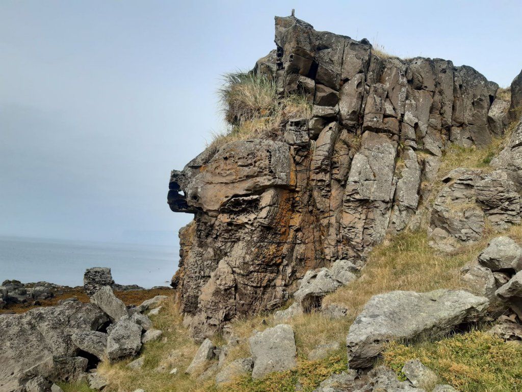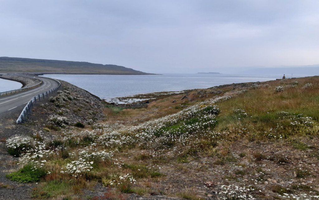 Den nächsten Tag beginnen wir mit einem Abstecher auf die Nordseite des Steingrimsfjords bis Drangsnes. Hier freuen wir uns auf Kaffee mit Gipfeli zum Znüni, sind dann aber froh, dass wir in dem kleinen Ort überhaupt eine Verpflegungsmöglichkeit finden. In einer Touristenunterkunft bekommen wir Kaffee, aber die Gipfeli sind alle. Es gibt nur feine, reichhaltige Kuchen. Ist das jetzt Pech oder doch eher Glück?