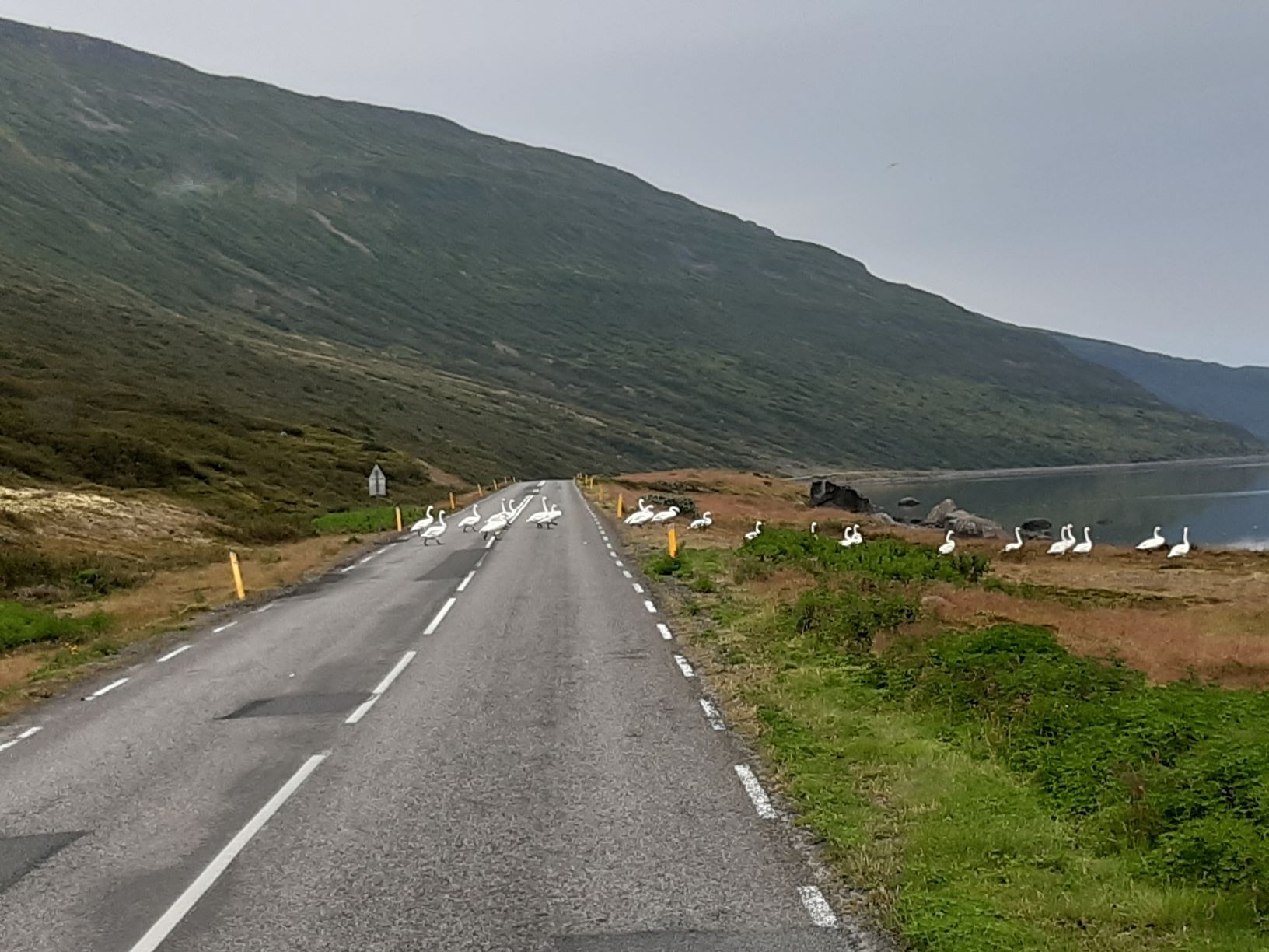 Schafe auf der Strasse gehören hier zum Alltag, aber die rund zwei Dutzend Schwäne, die am folgenden Morgen vor unserem Fahrzeug vorbeiwatscheln, haben bis jetzt Seltenheitswert. Immerhin können sie froh sein, dass ein aufmerksamer Chauffeur am Steuer sitzt!