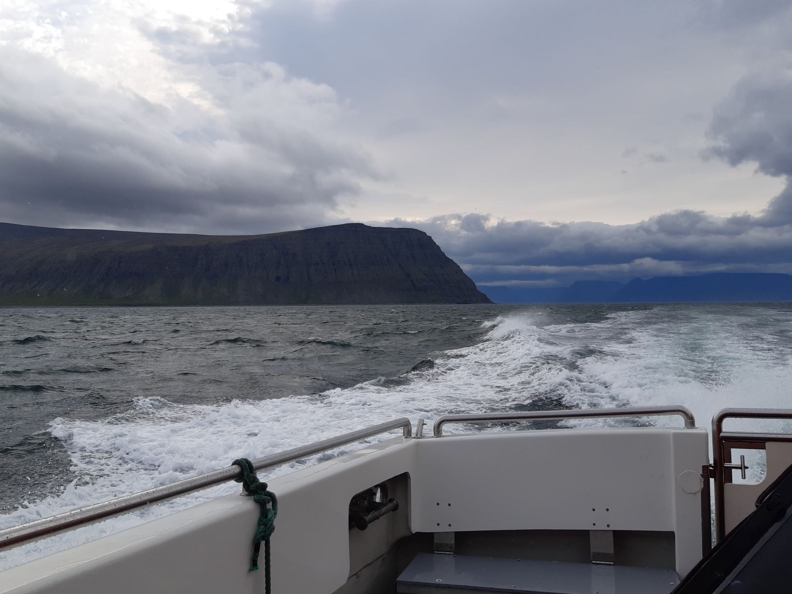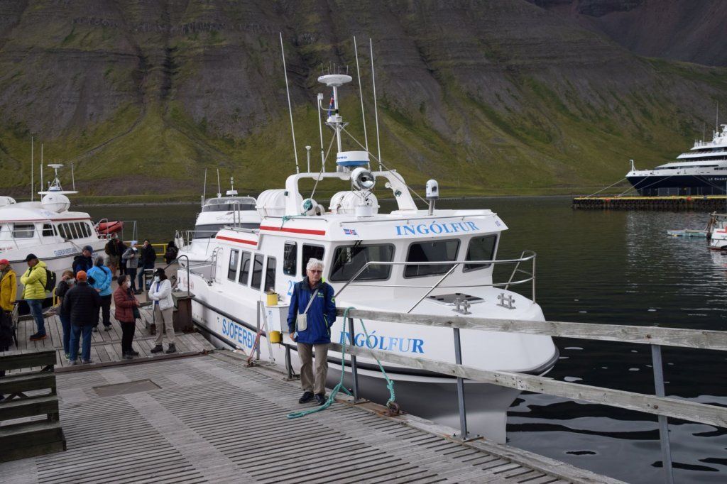 Die Rückfahrt über den Fjord ist noch eine Spur ruppiger, aber die Schiffscrew ist so unbekümmert, dass wir uns ebenfalls keine Sorgen machen. Tatsächlich kommen wir unversehrt in Isafjördur an, erfüllt von einem besonders schönen Erlebnis.