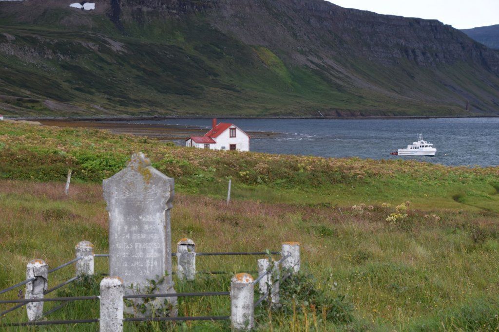 Beim winzigen Friedhof erzählt der Guide allerlei Geschichten, wahre und sagenhafte. Bevor wir weitergehen, muss er die Elfen vorwarnen, indem er dreimal an ein Glöckchen schlägt. Hesteyri war einst ein kleines, abgeschiedenes Fischerdorf, das mehr und mehr verlassen wurde, bis eine von Norwegen gebaute Walverarbeitungsstation den Menschen wieder ein gesichertes Einkommen bot. Als Island aber als eines der ersten Länder den Walfang verbot, suchten sich viele Einwohner erneut anderswo eine Existenzgrundlage. Erst durch das neu errichtete Hering-Verarbeitungswerk nahm das Dorf wieder einen Aufschwung. Doch eines Tages blieben die Heringschwärme aus, und zwar für immer. 1950 beschlossen die Menschen, das Dorf Hesteyri endgültig zu verlassen. Die meisten nahmen die Innenwände ihrer Häuser mit, um sie in ihrer neuen Heimat wieder zu verwenden. Nur ein paar wenige Häuser blieben intakt zurück, die heute von den Nachkommen der einstigen Besitzer gepflegt werden.