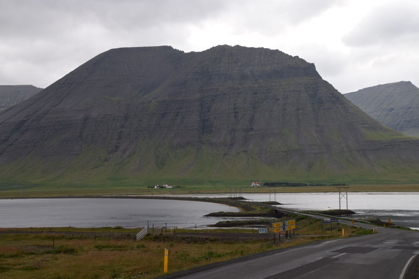 Was nachher folgt, gehört nicht mehr in die Kategorie schön. Eine schlechte, löchrige Naturstrasse führt über einen Pass und die bestimmt wunderschöne Dynjandisheidi (Heidi = Heide). Davon sehen wir allerdings praktisch nichts, dichter Nebel, Regen und böiger Wind vermiesen die Reise und fordern den Chauffeur. Na ja, es läuft halt nicht immer alles nach Wunsch!