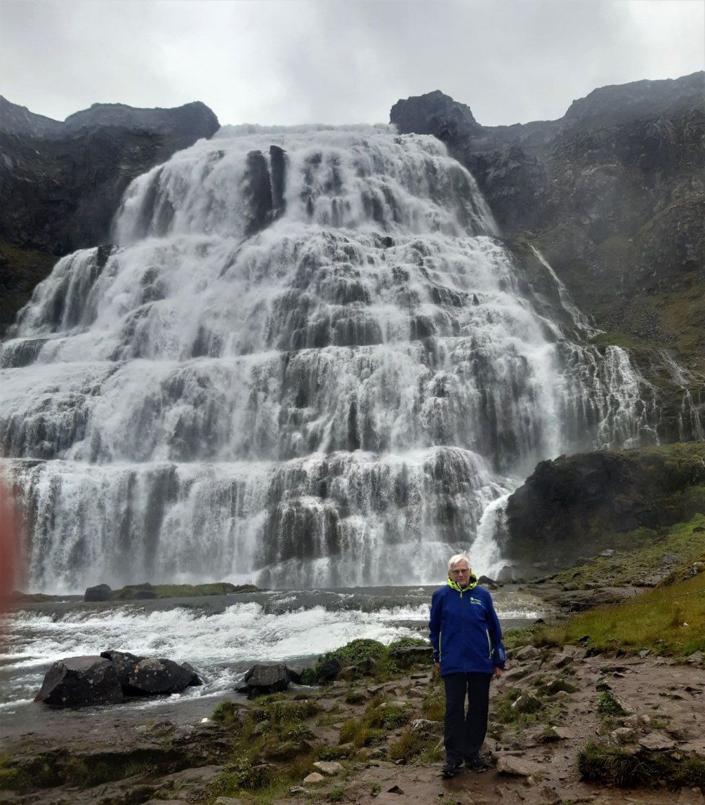 Der nächste Tag ist trüb und regnerisch. Das ist besonders schade, weil wir am schönsten Wasserfall Islands vorbeikommen, dem Dynjandifoss. Er ist aber auch bei schlechtem Wetter schön, wir steigen den nassen, steinigen Weg hoch, um dem imposanten Wasserfall möglichst nah zu sein.