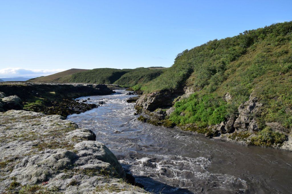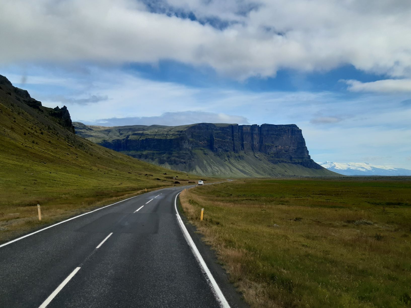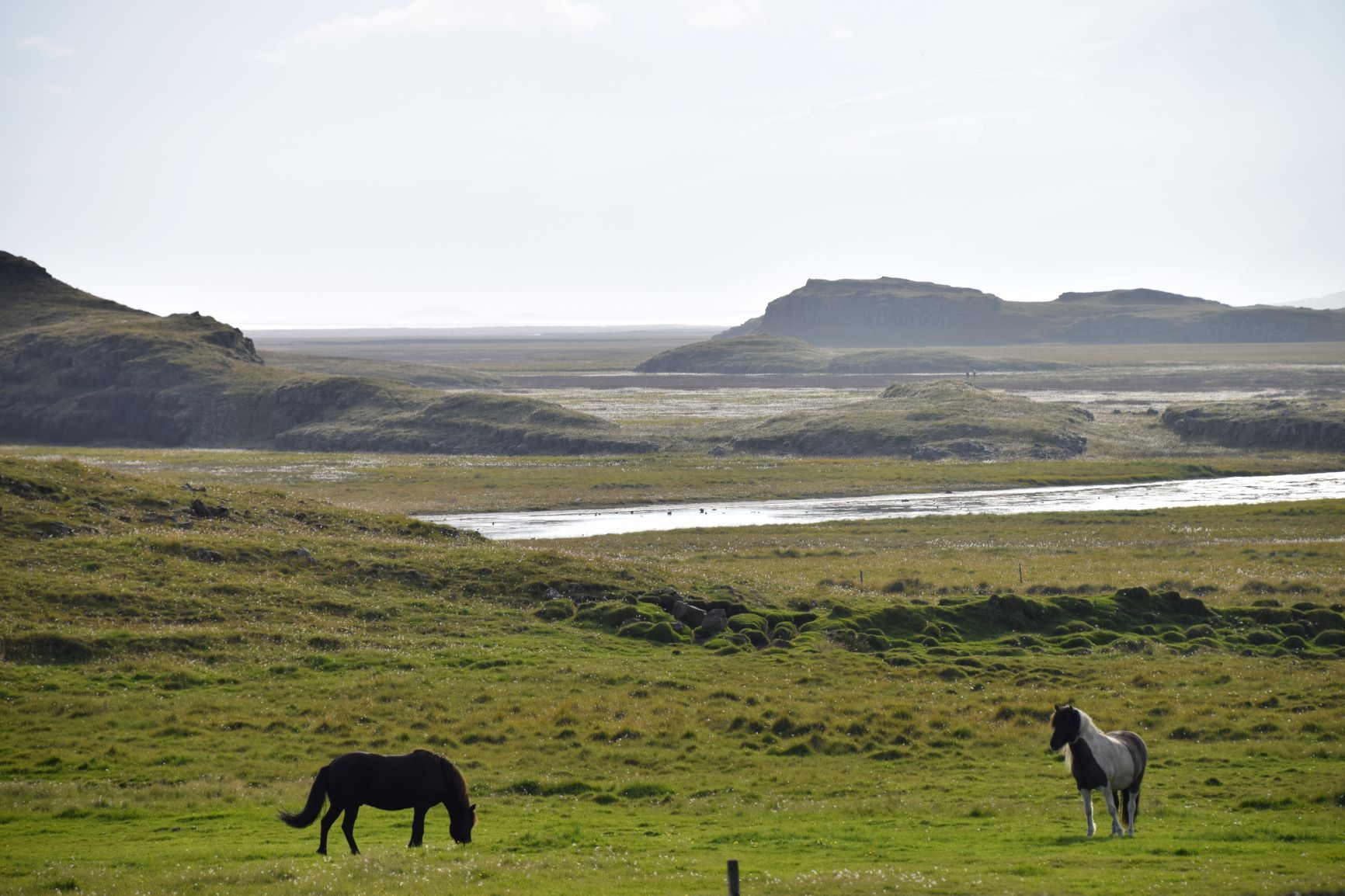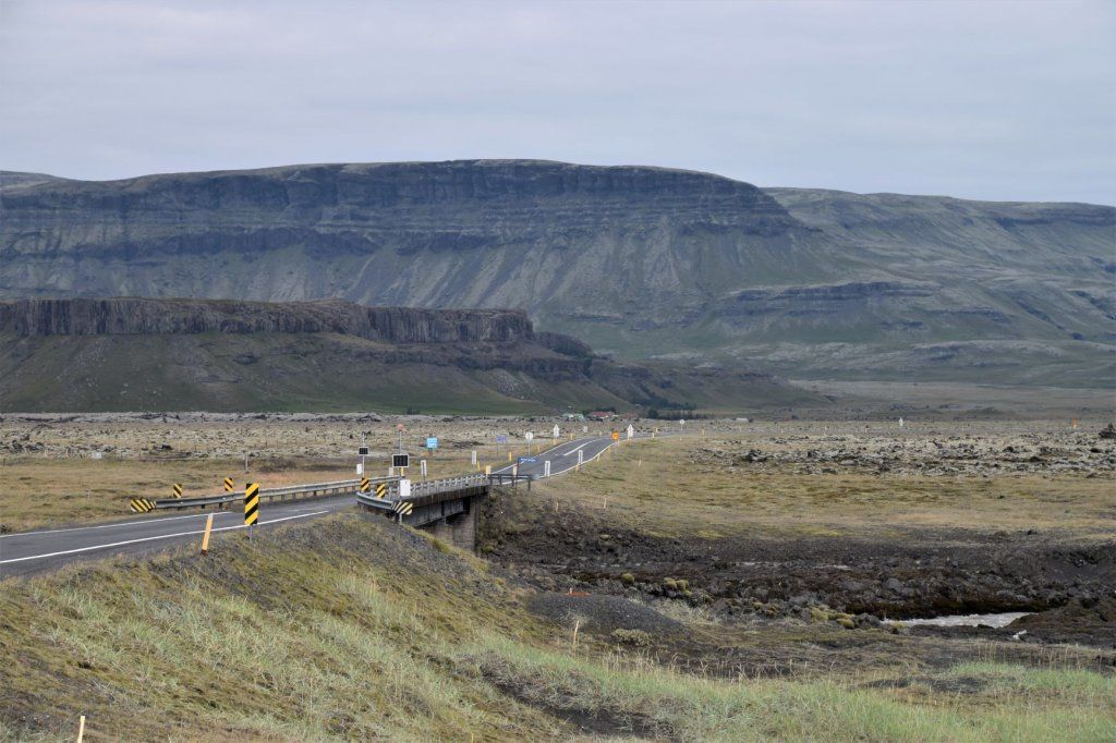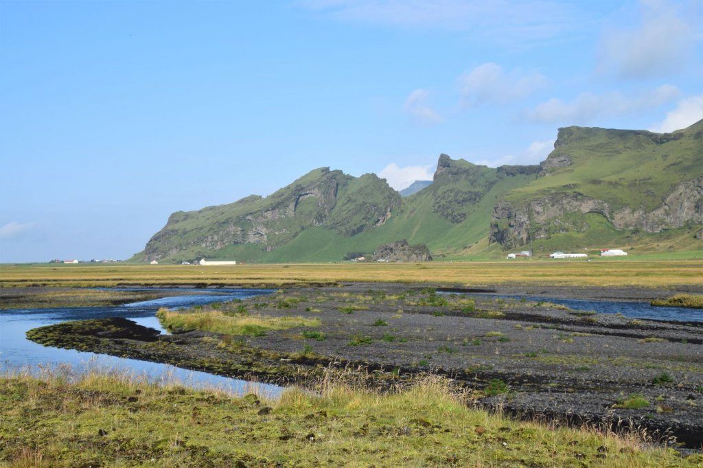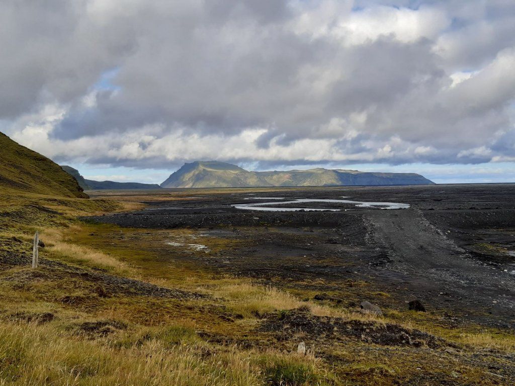 Nach dem Mittagshalt in Vik geht die Reise weiter auf der Ringstrasse. Schön ist der Blick zum Gletscher Myrdalsjökull. Für die Nacht zweigen wir von der Hauptstrasse ab und fahren ein gutes Stück auf Naturstrasse in die „Wildnis“ weit abseits der Zivilisation. Man hört nur das kräftige Rauschen des Flusses Leira.