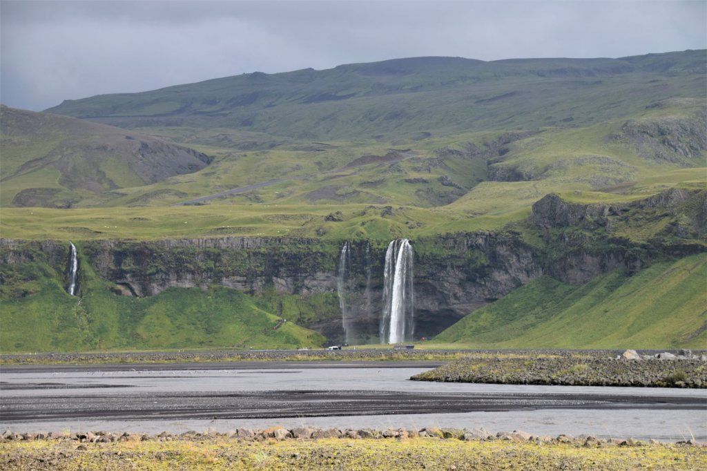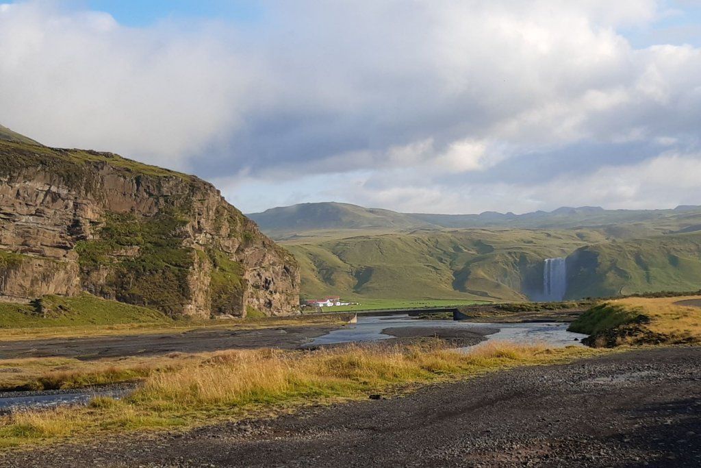 Auf der Ringstrasse Nr. 1 rollen wir nun durch den Süden der Insel, von West nach Ost. Nach einigem Suchen finden wir gegenüber des Wasserfalls Skogafoss ein wunderbares Nachtlager.