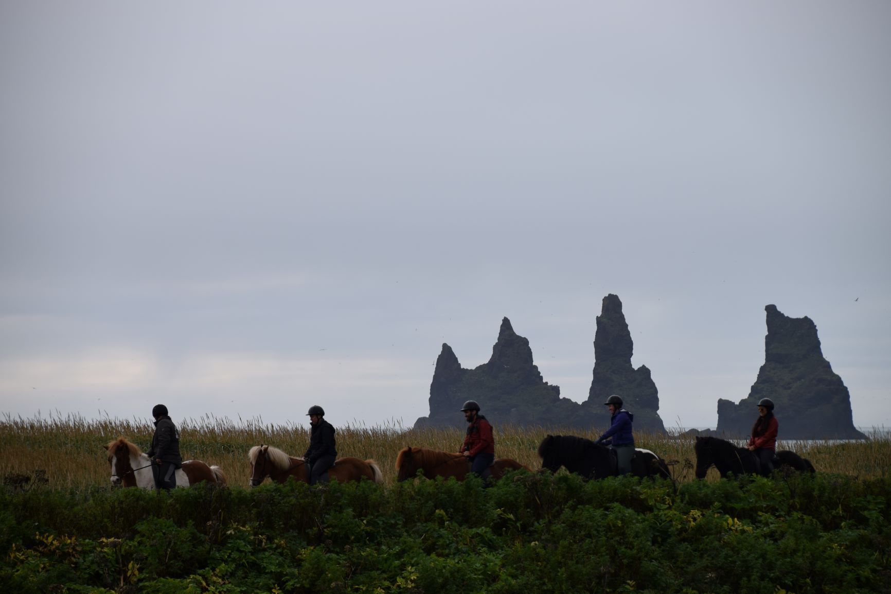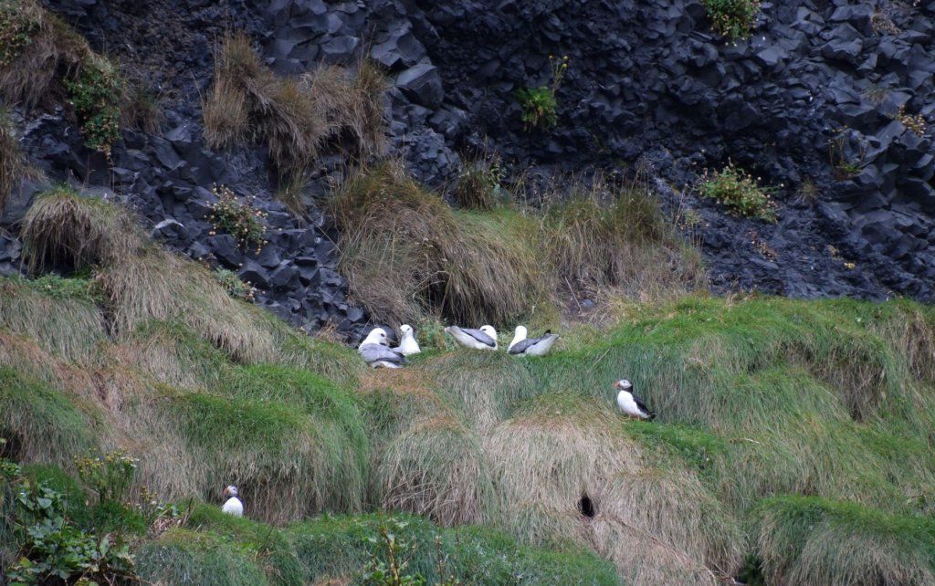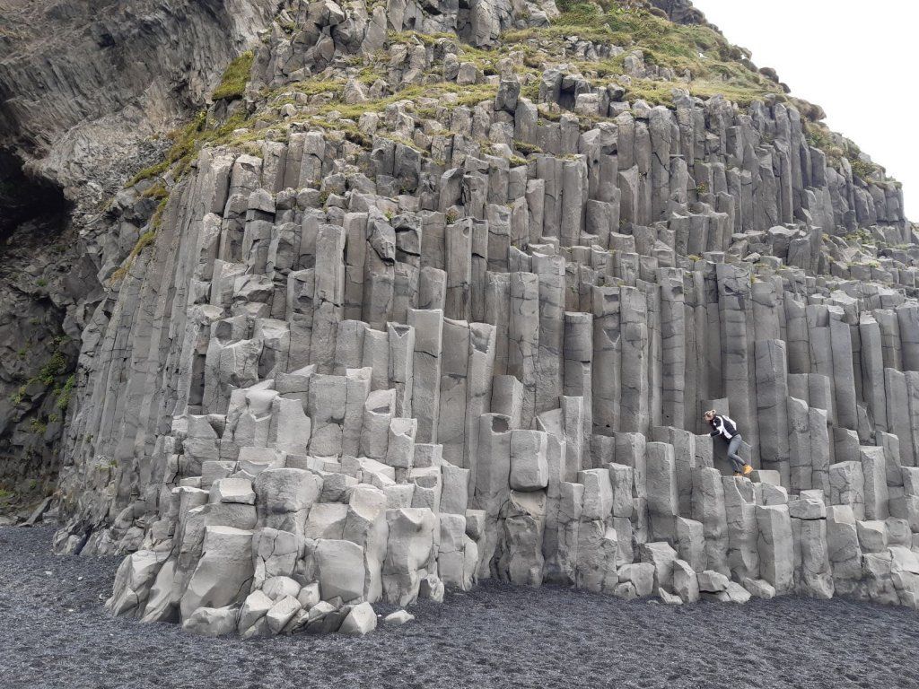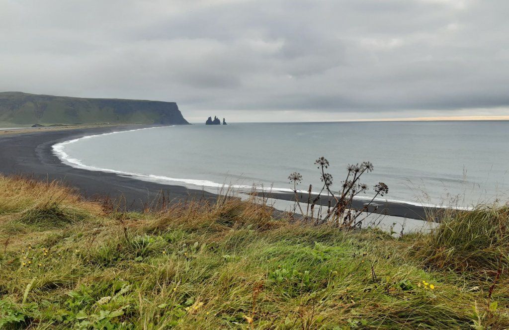 Der nächste Tag beginnt trüb. Wir fahren zur Südspitze Islands. Beim Kap Dyrholaey betrachten wir von oben schwarze Strände und bizarre Felsformationen, in Reynisfjall kommt man auf dem schwarzen Sand an Felsen und Höhlen vorbei, umrahmt von Basaltsäulen. Oberhalb der Säulen nisten unzählige Vögel.