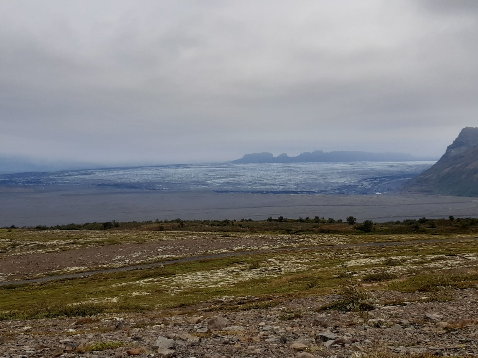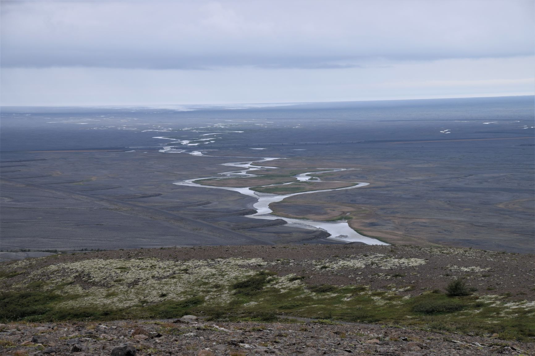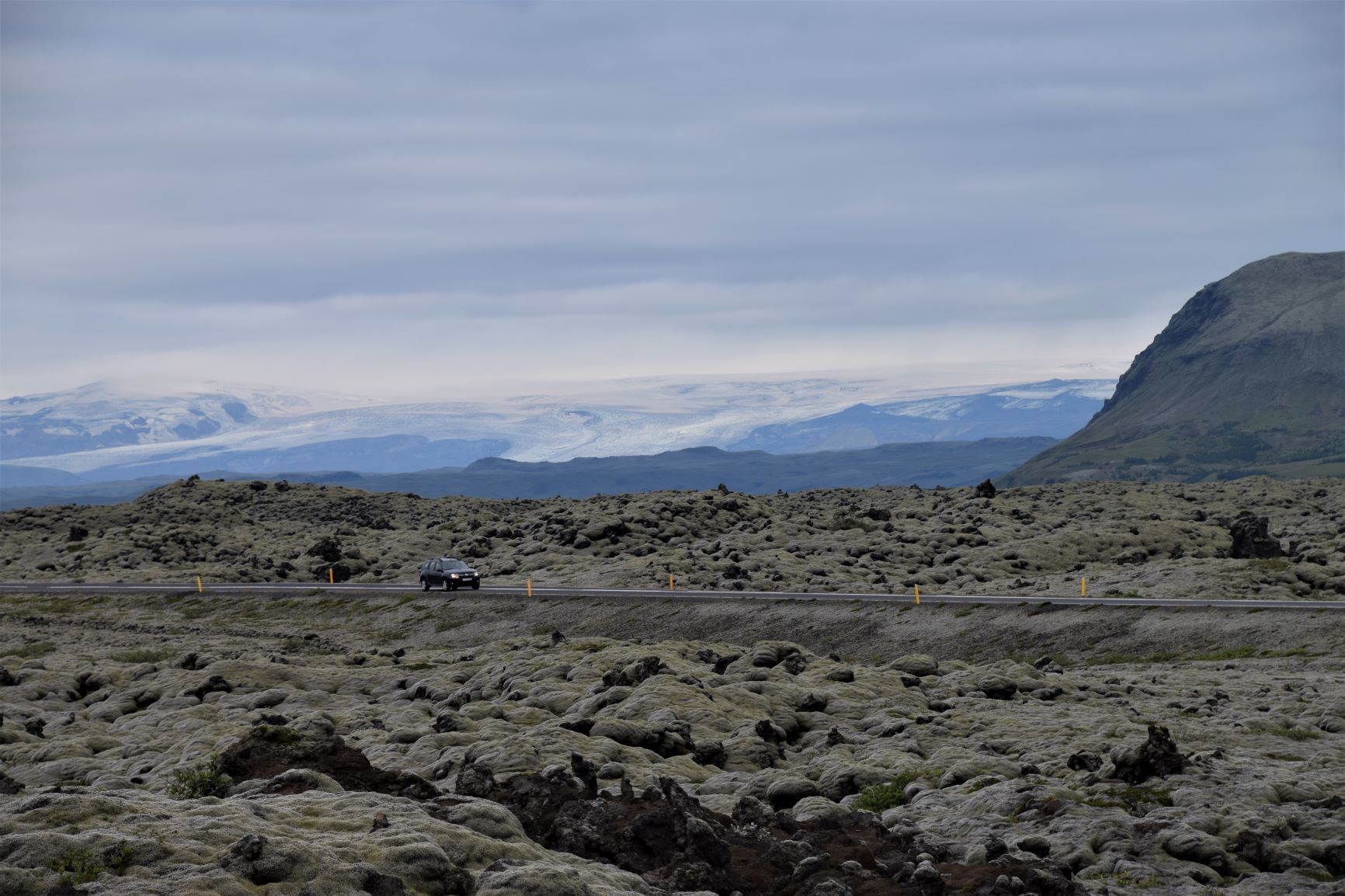 Nun haben wir ein besonderes Ziel: Der Süden des riesigen Nationalparks Vatnajökull. Der Vatnajökull ist das grösste Gletschermassiv Islands, wir werden nur die Ausläufer im Süden sehen. Die Fahrt bis zum Campingplatz Skaftafell ist einzigartig. Die unendlich weiten Lavafelder Eldhraun, die mit einem gräulichen Moosteppich überwachsen sind, geben der Landschaft eine surrealistische Note. Sie sind durch den Ausbruch des Vulkans Laki entstanden, der von Juni 1783 bis Februar 1784 dauerte. Gleichzeitig führt die Route durch das immense Schwemmgebiet des Gletschers.
