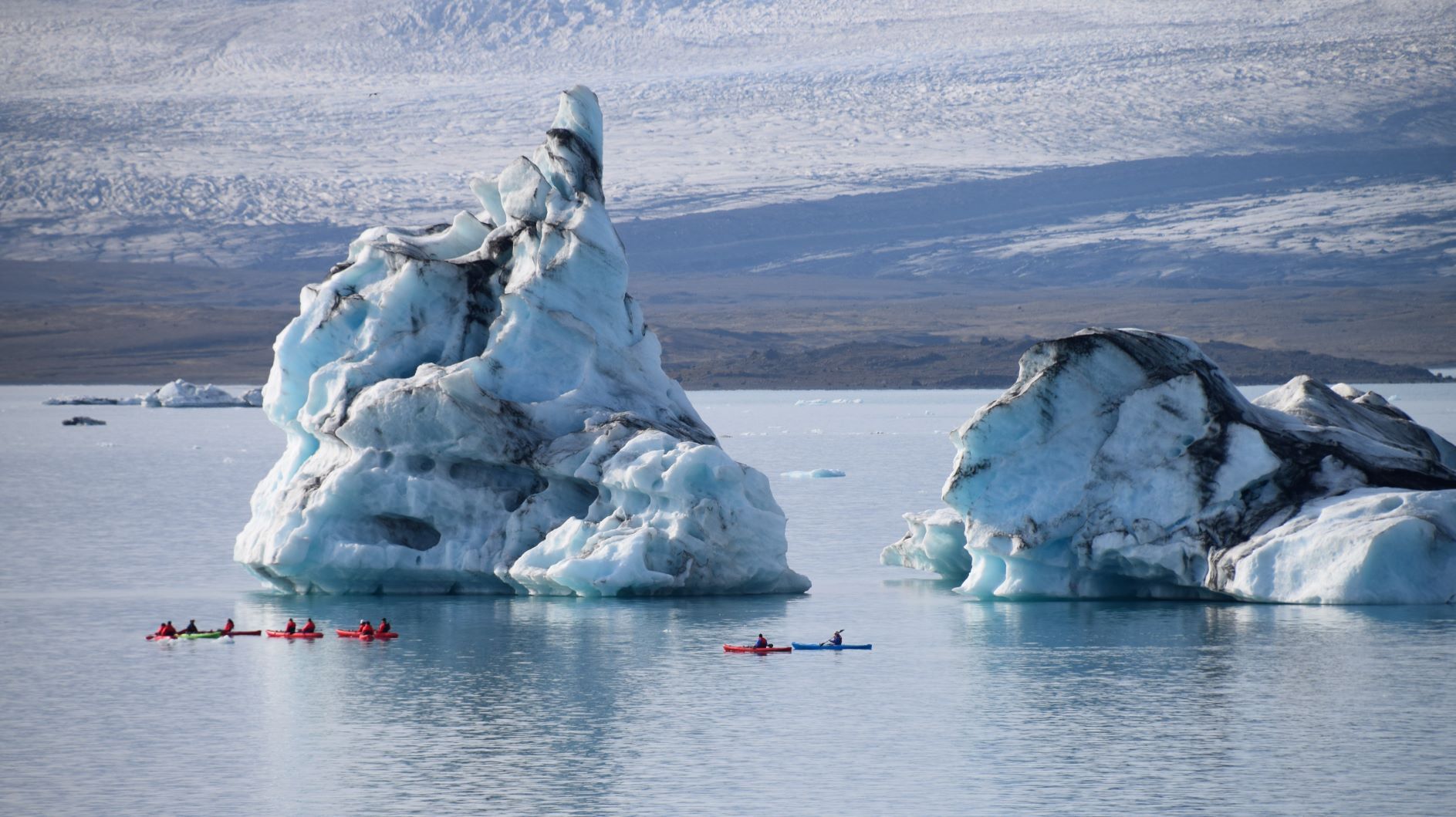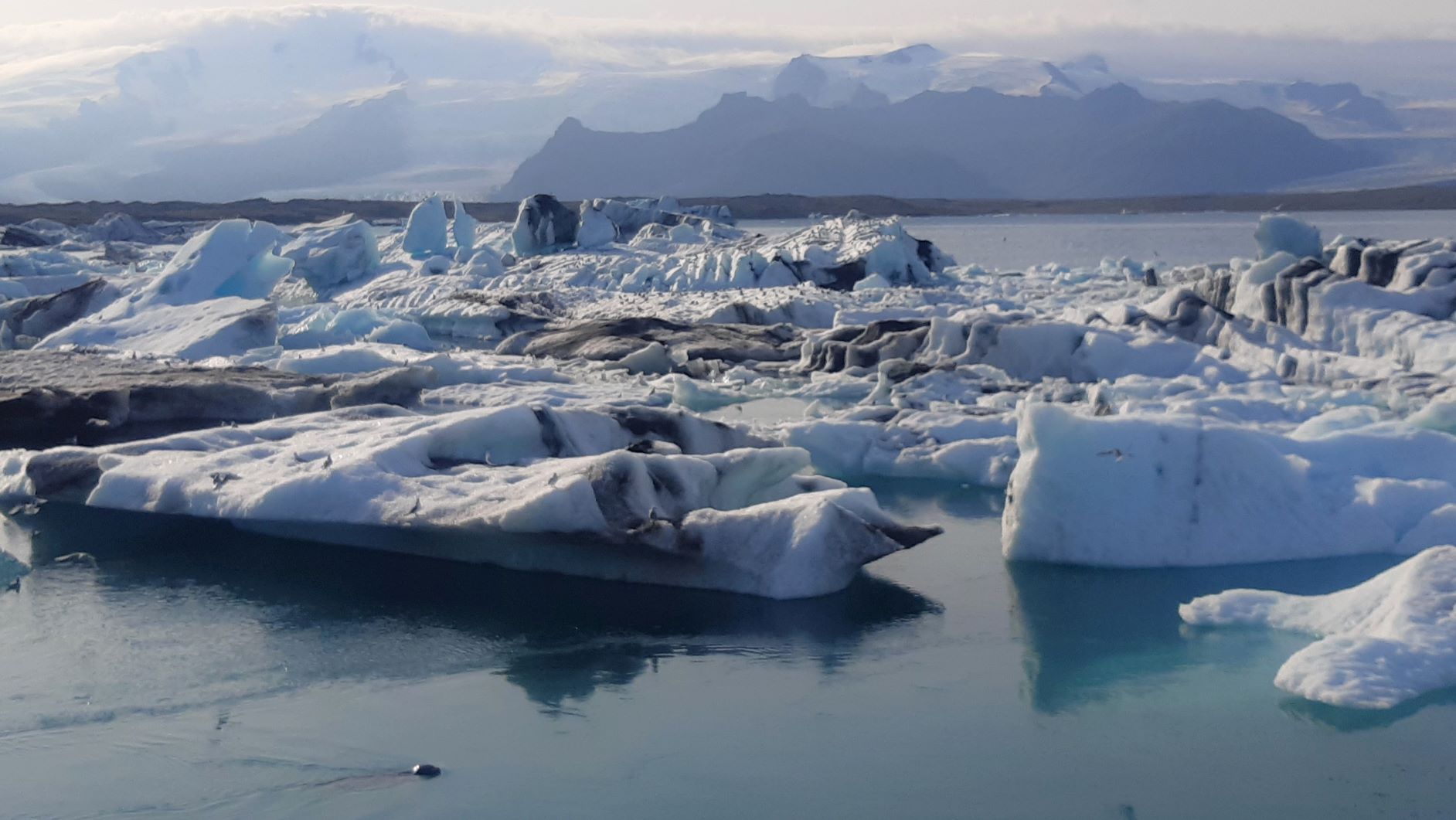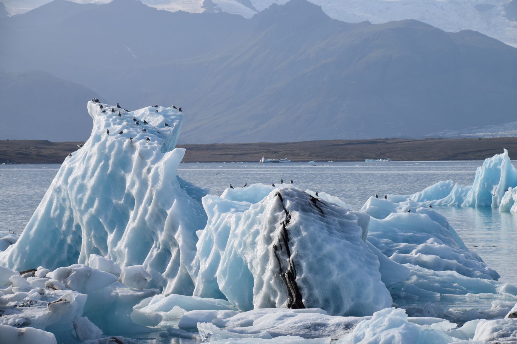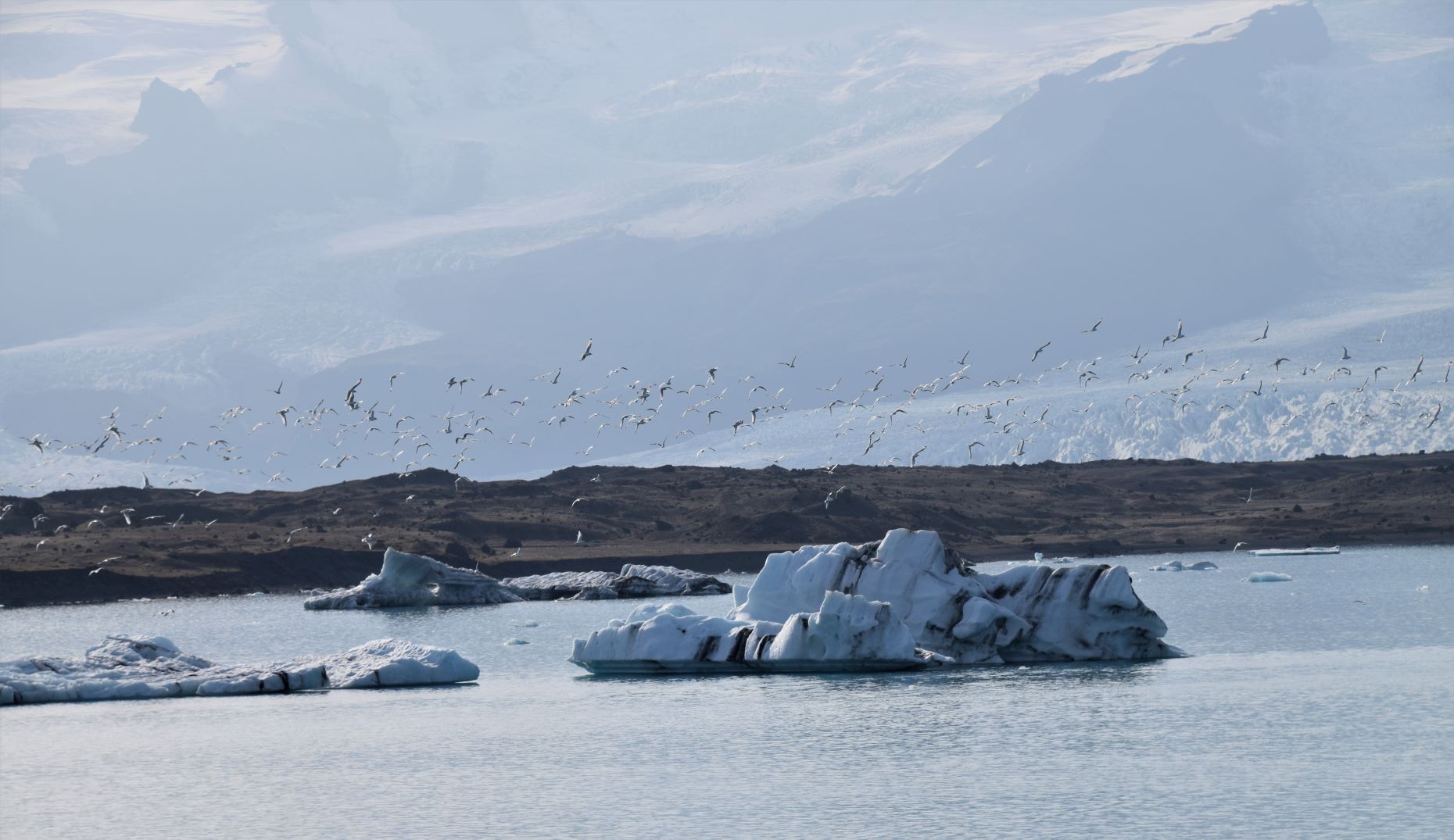 Am Nachmittag fahren wir zu den Gletscherseen Breidarlon und Jökulsarlon. Gerade rechtzeitig schickt die Sonne ihre Strahlen auf die blauschwarzen Eisberge. Die Szenerie ist beeindruckend und wird durch eine Vielzahl von Seevögeln auf den Eisbergen und eine Handvoll Robben im Wasser ergänzt.