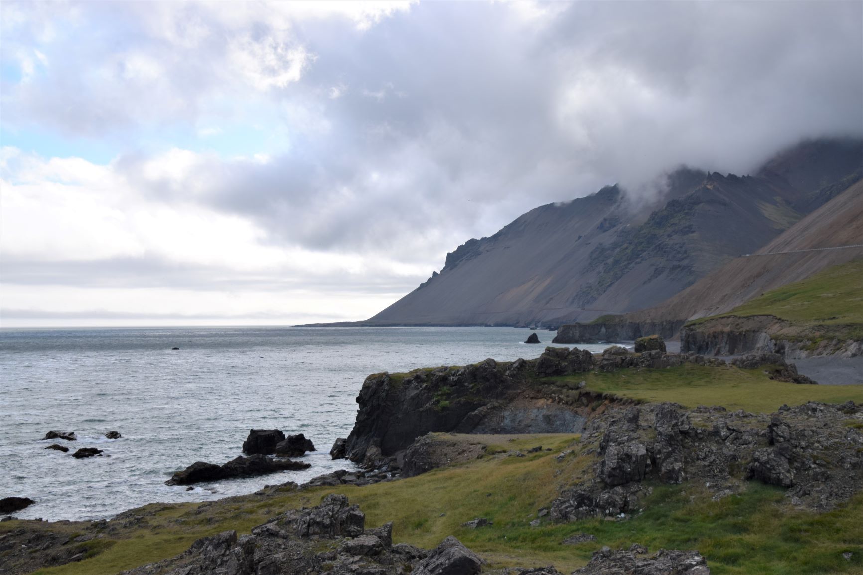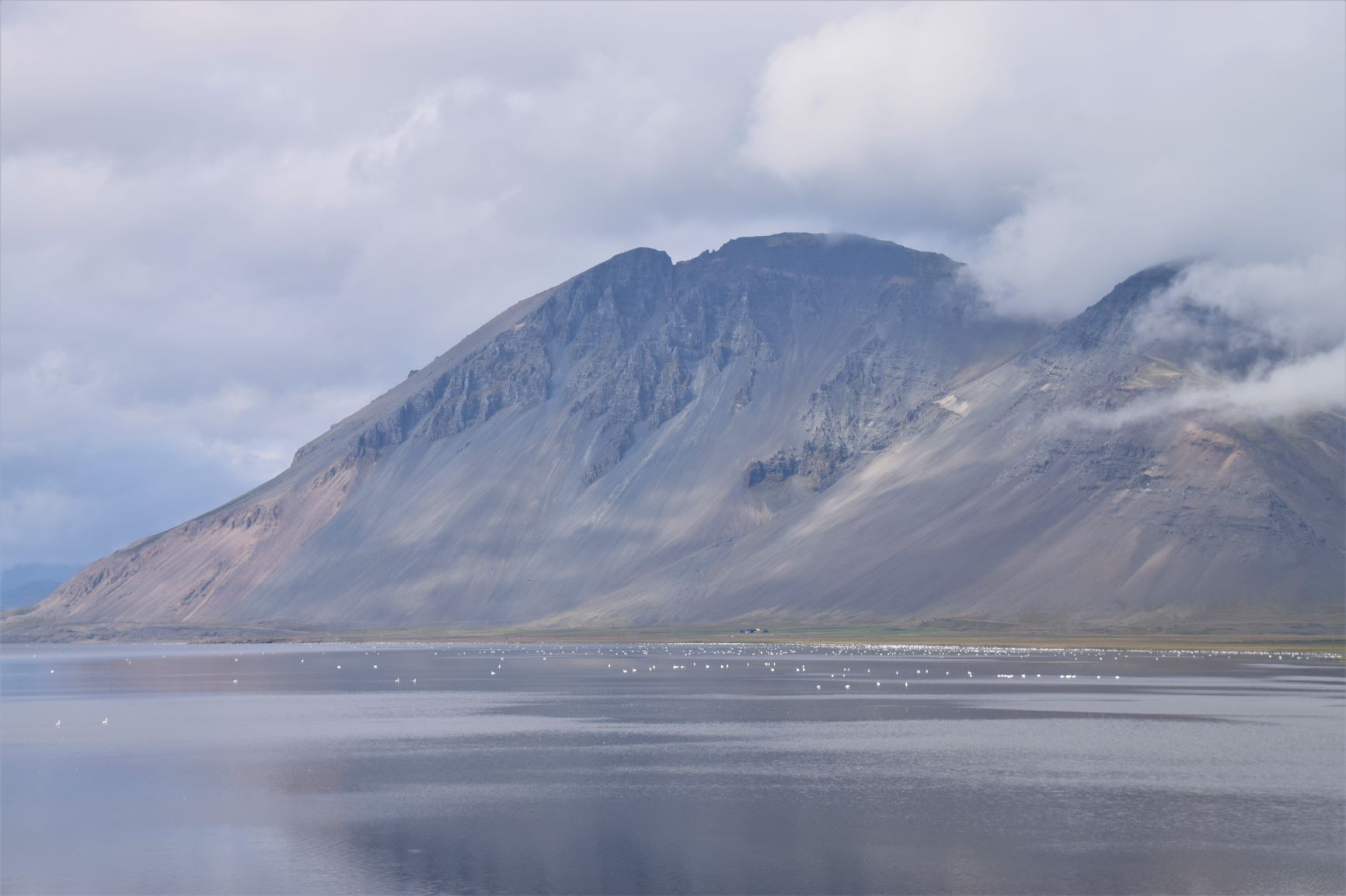 Bereits ist’s wieder trüb, neblig, regnerisch. Das Wetter ist so vielfältig und wechselnd wie die Landschaft. Das erste Ziel heisst Höfn (Hafen), ein kleiner Ort am Meer. Hier erledigen wir den Einkauf und die Kaffeepause, aber für einen gemütlichen Vogelbeobachtungs-Spaziergang dem Ufer entlang ist es uns zu kalt und feucht.
