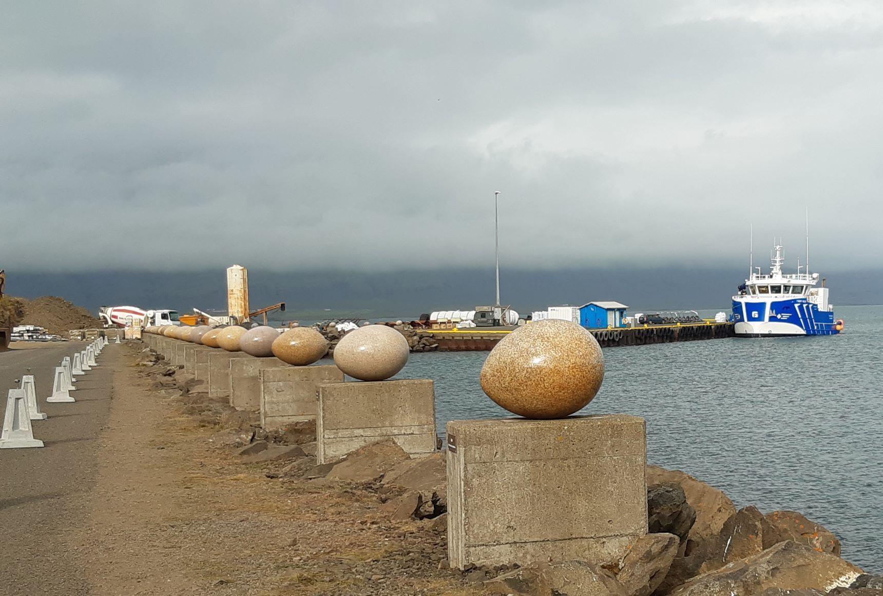 In Djupivogur ist die Situation ähnlich wie in Höfn. Es gäbe eine grosse Vielfalt an Vögeln zu beobachten, aber es ist kalt, feucht und unwirtlich. So beschränken wir uns auf einen Blick auf die 34 Steineier entlang der Küstenstrasse. Die um ein Vielfaches vergrösserten Eier sind den echten Eiern der heimischen Vögel nachgeformt.