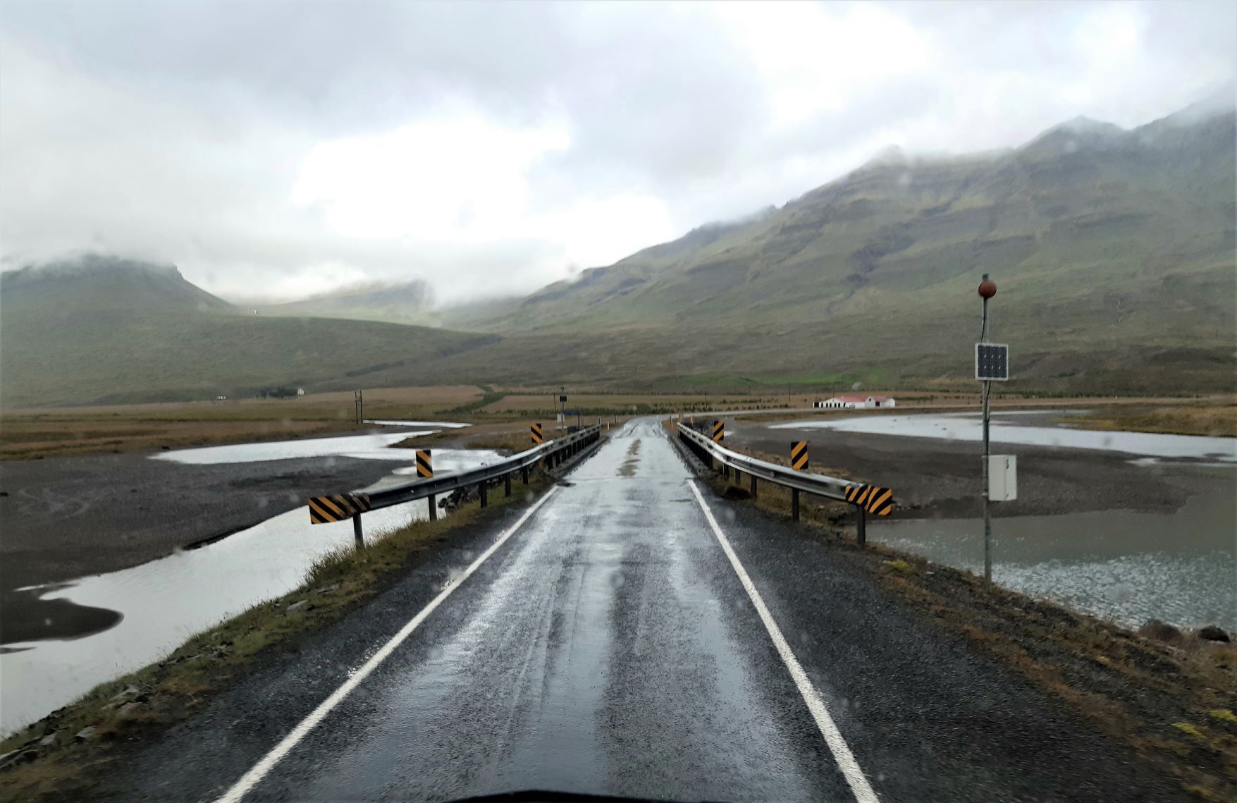 Heute fahren wir das letzte Stück auf der Ringstrasse Nr. 1 nordwärts bis Egilsstadir. Langsam taucht die wunderbare Landschaft aus dem Nebel auf, es wird immer trockener und freundlicher. Am Ende scheint sogar die Sonne. Wir kennen unterdessen ja den stetigen Wetterwechsel, sind aber trotzdem immer wieder verblüfft, wie schnell und radikal dieser vonstattengehen kann.