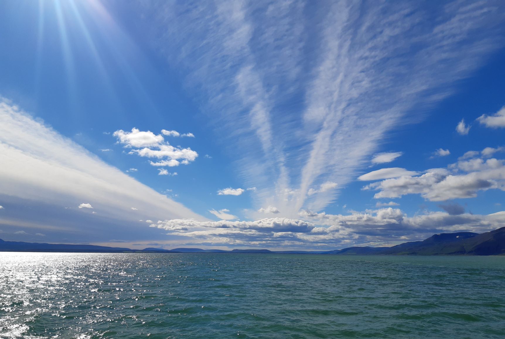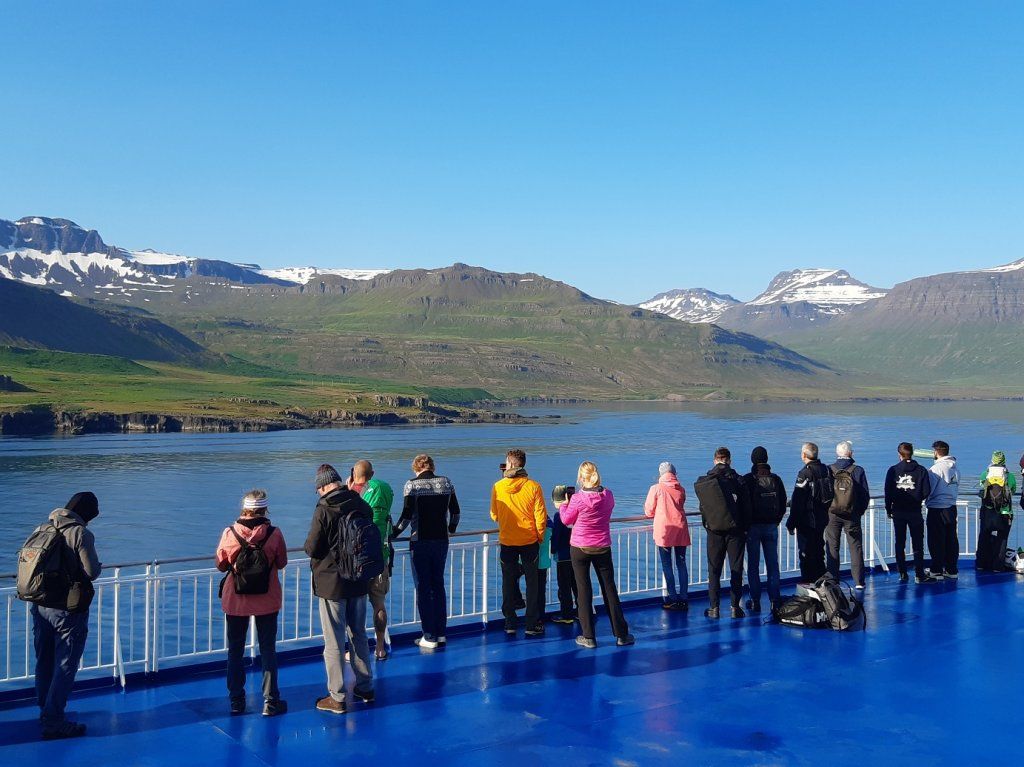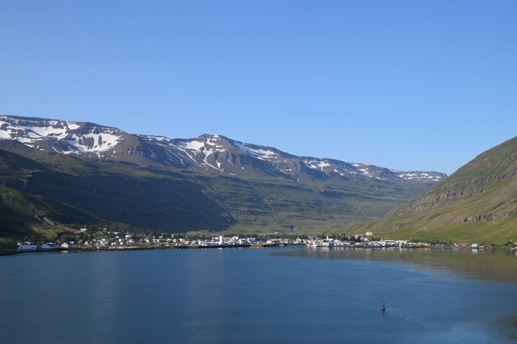 Gross ist die Freude, als uns am frühen Donnerstagmorgen die Insel Island bei strahlendem Sonnenschein empfängt. Der Fährhafen liegt auf der Ostseite in Seydisfjördur (die isländische Schreibweise ist nicht ganz korrekt und die Aussprache auch nicht, aber man tut, was man kann). Insofern haben wir bereits Glück, als das Wetter nur im Nordosten so freundlich ist, während es im Westen (Reykjavik) und Süden regnet.