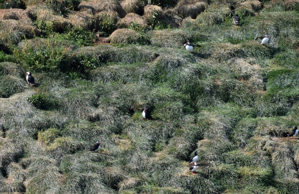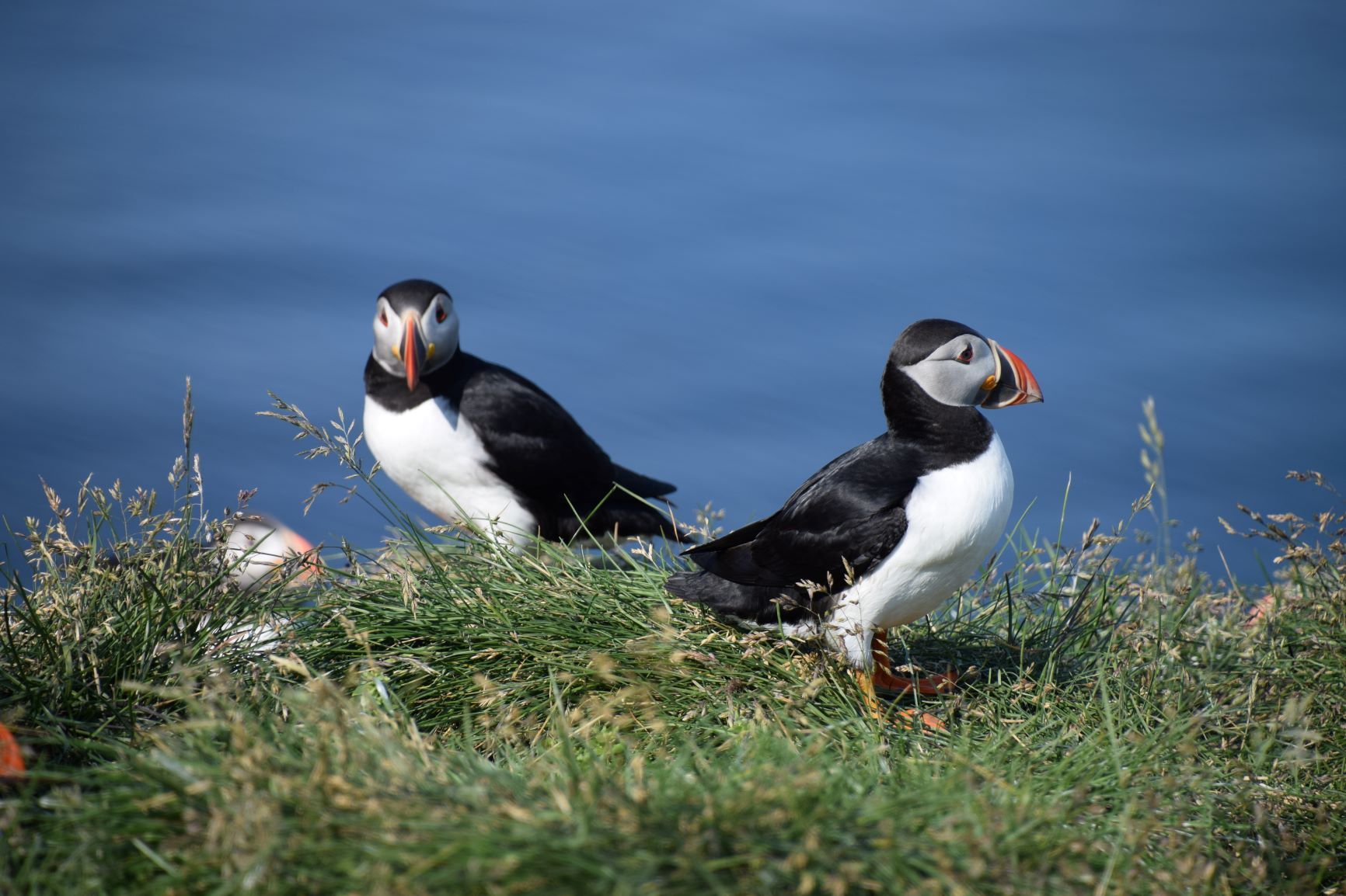 Nachdem wir in Egilsstadir (wir nennen es der Einfachheit halber Eglisau) die Kühlschränke aufgefüllt haben, ziehen wir zu viert nordwärts und statten in Bakkagerdi den Papageientauchern einen Besuch ab. Im Reiseführer steht, dass man sie fast anfassen kann, und das stimmt tatsächlich! Die Nacht verbringen wir allein auf weiter Flur, zusammen mit ein paar neugierigen Schafen.