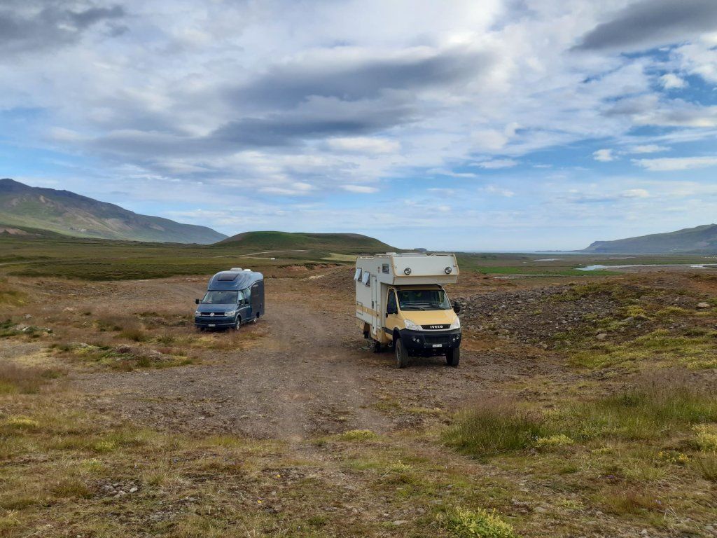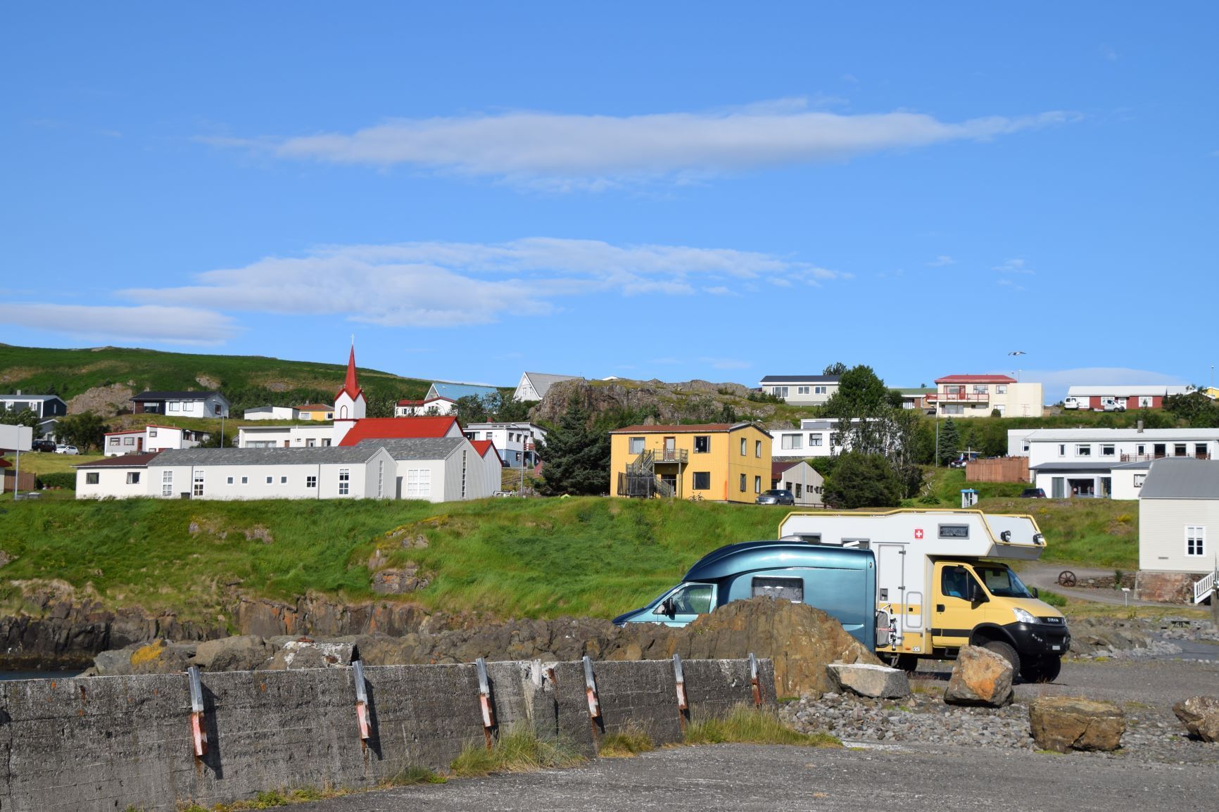 Schliesslich kommen wir im schön gelegenen Fischerort Husavik an. Wir vier richten uns auf einem Parkplatz für die vorläufig letzte gemeinsame Nacht ein.