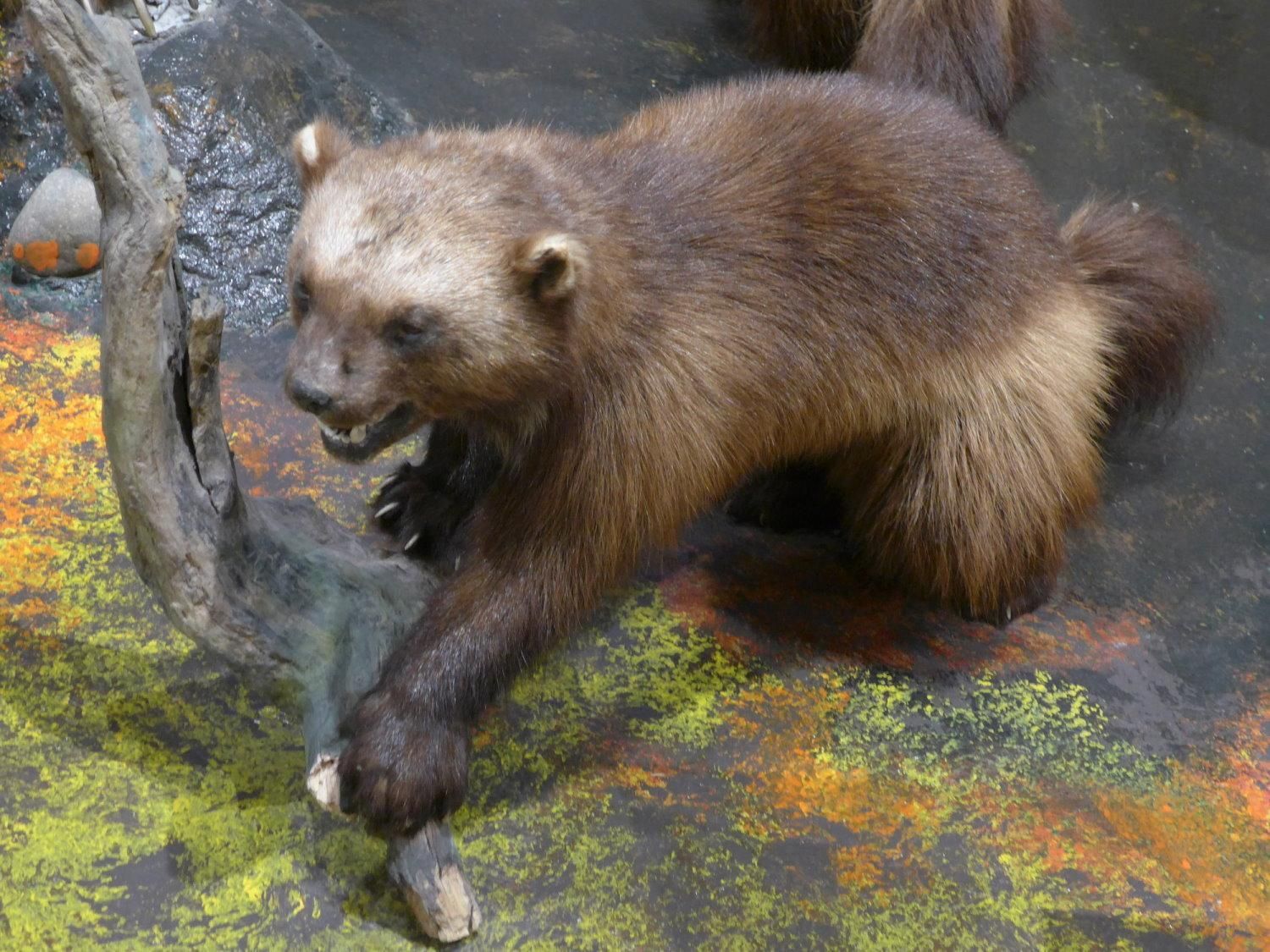 Zuerst muss Verschiedenes erledigt werden und weil der Camper nach der staubigen Fahrt nicht mehr zu erkennen ist, wird er von Heinz gründlich eingeseift und abgespritzt. Später scheint ein Besuch im McBride Museum of Yukon History dem Regenwetter angepasst. Die kleine Ausstellung haut uns zwar nicht aus den Socken, aber hier finden wir das ausgestopfte Pelztier namens Vielfrass. Ist doch auch was.