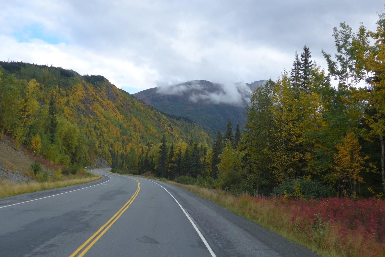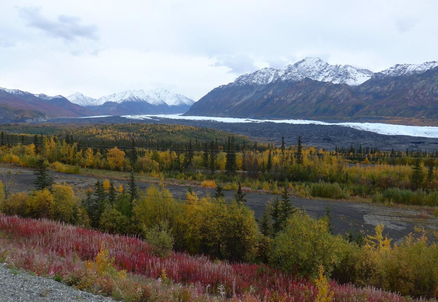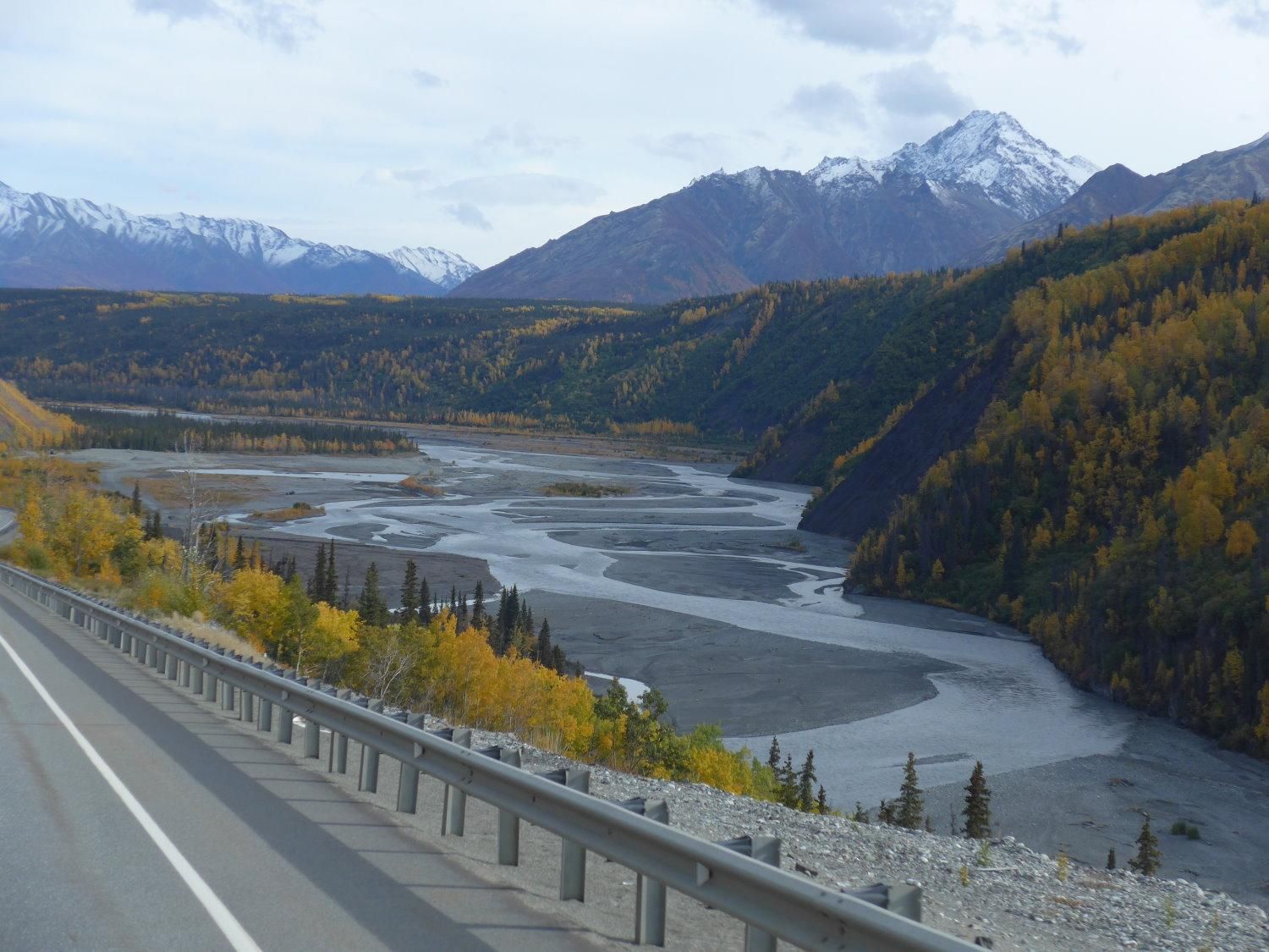 Für die Fahrt auf dem Glenn Highway und am folgenden Tag auf dem Tok Cutoff Highway scheint extra wieder die Sonne und lässt die Herbstfarben leuchten, dass es eine Pracht ist. Die Königs- und die Kaiseretappe werden noch übertroffen, es ist einfach unbeschreiblich. Als Kulisse dienen schneebedeckte Berge, im Süden erst die Chugach Mountains mit dem Matanuska Gletscher, später die Wrangell Mountains, im Norden die Alaska Range.