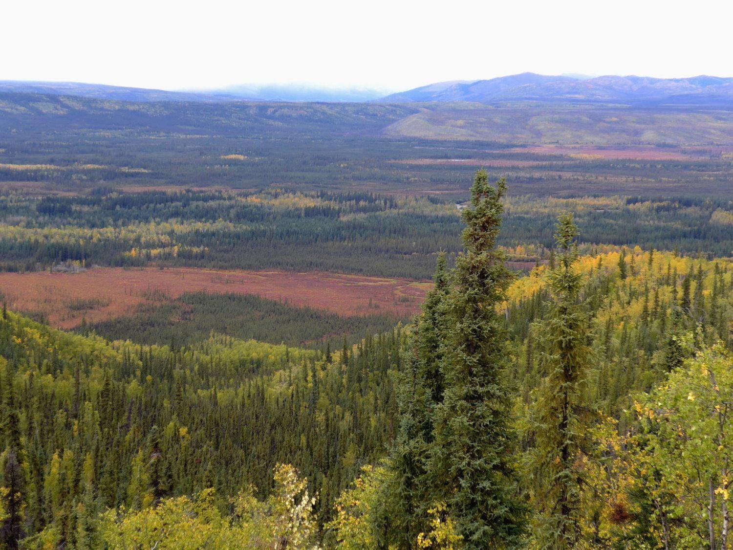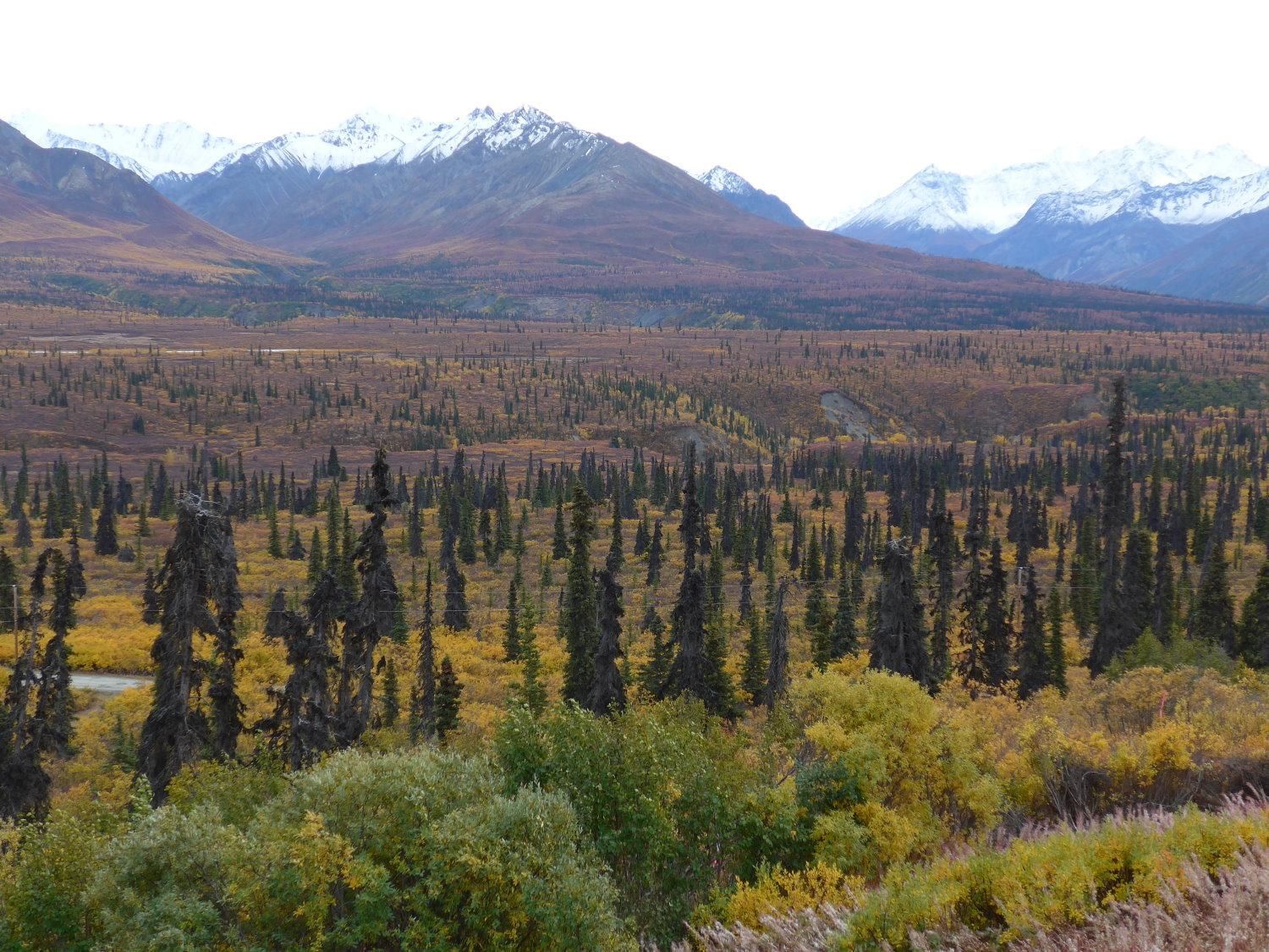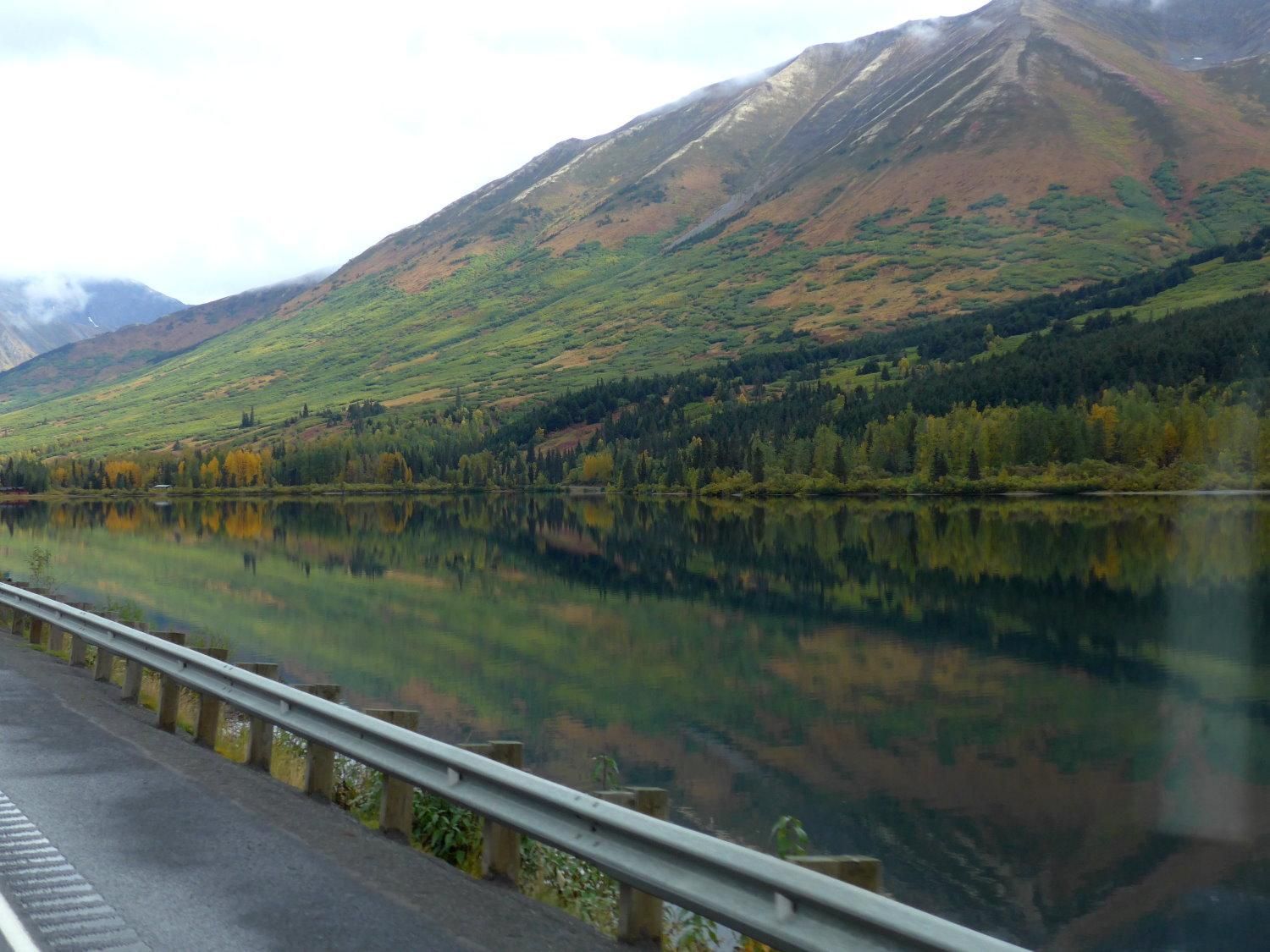 Für die Fahrt auf dem Glenn Highway und am folgenden Tag auf dem Tok Cutoff Highway scheint extra wieder die Sonne und lässt die Herbstfarben leuchten, dass es eine Pracht ist. Die Königs- und die Kaiseretappe werden noch übertroffen, es ist einfach unbeschreiblich. Als Kulisse dienen schneebedeckte Berge, im Süden erst die Chugach Mountains mit dem Matanuska Gletscher, später die Wrangell Mountains, im Norden die Alaska Range.