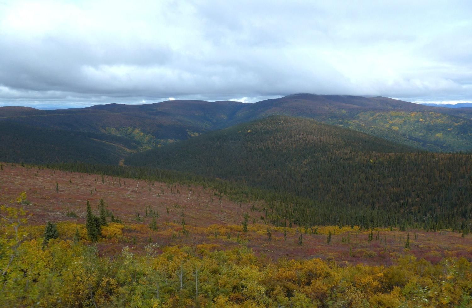 Heute ist Freitag, unser Tacho zeigt 13‘013 km an. Ein wahrer Glückstag, obschon es bei 4°C immer noch regnet. Die Überlandstrassen haben hier nebst einer Nummer auch einen Namen. Wir verlassen also den Alaska Highway und fahren auf dem Klondike Highway bis Dawson City. In den vergangenen Tagen sind wir in einen wunderbaren Herbst gefahren. Die Künstlerin Natur hat ein wahres Gemälde geschaffen.