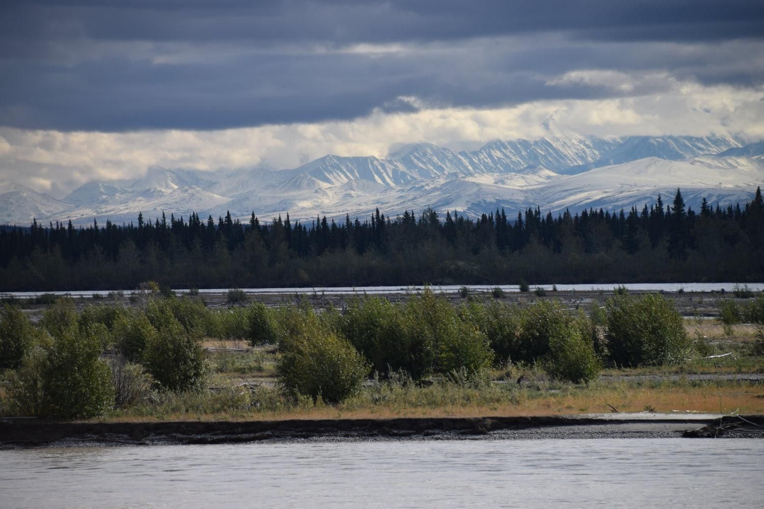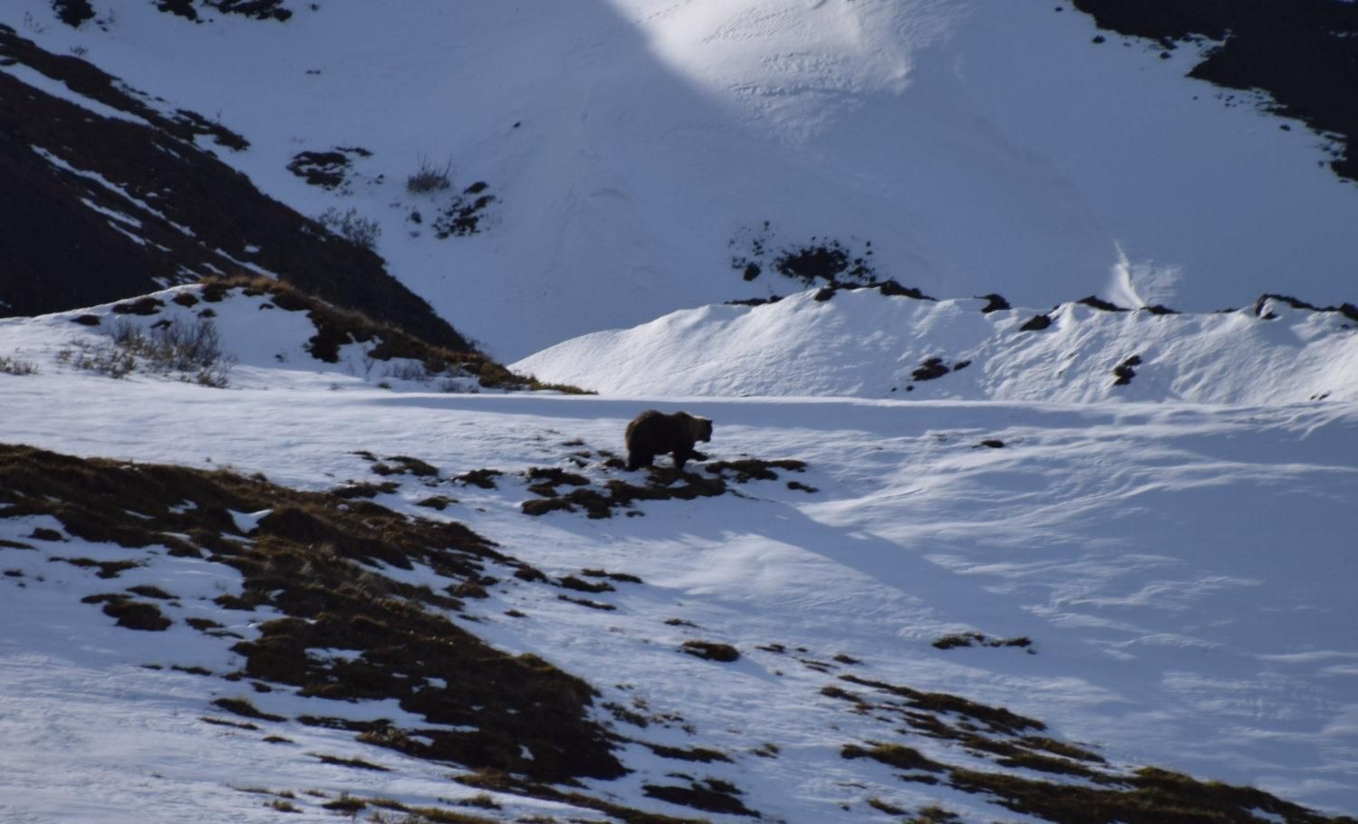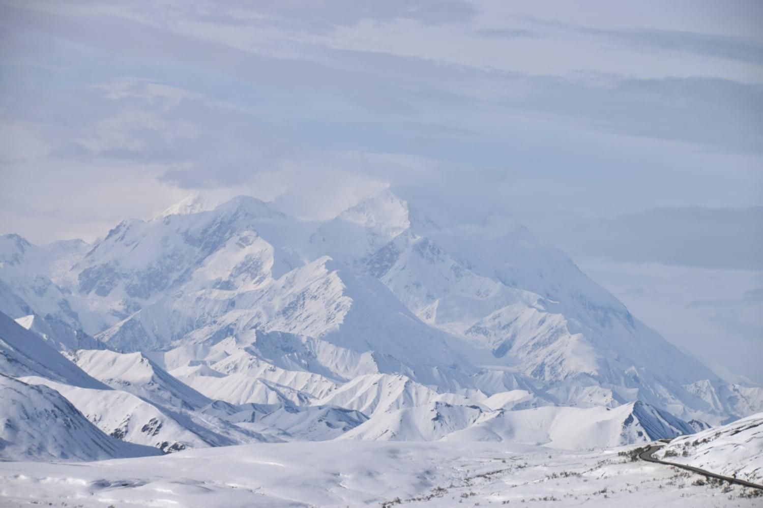 Auch ohne Tiere wäre die lange Tour fantastisch. Immer wieder schieben sich neue Schluchten, Flüsse, weite Hügel ins Bild. Die Berge der Alaska Range sind verschneit und beim höchsten Pass kommen auch wir in den Schnee. Den Mt. McKinley, der neuerdings Denali heisst, sehen wir fast ohne Nebelhut in seiner ganzen Grösse von 6‘190 m.