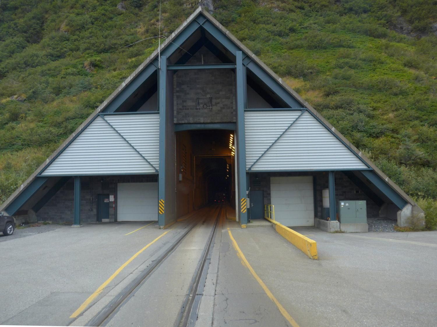 Ebenfalls spannend ist die Fahrt von Portage nach Whittier. Sie geht durch einen ca. 4,5 km langen Eisenbahntunnel, der für Bahn und Autos genutzt wird. Die Tunnelbreite entspricht einer Fahrspur, die Geschwindigkeit ist 40 km/h und man darf logischerweise nicht anhalten. Wir haben Glück und müssen nicht lange warten, bis wir an der Reihe sind. Als wir aus dem Tunnel auftauchen, sehen wir einen entgegenkommenden Zug. Er fährt im Schritttempo und hat wohl Vortritt gegenüber den wartenden Fahrzeugen.