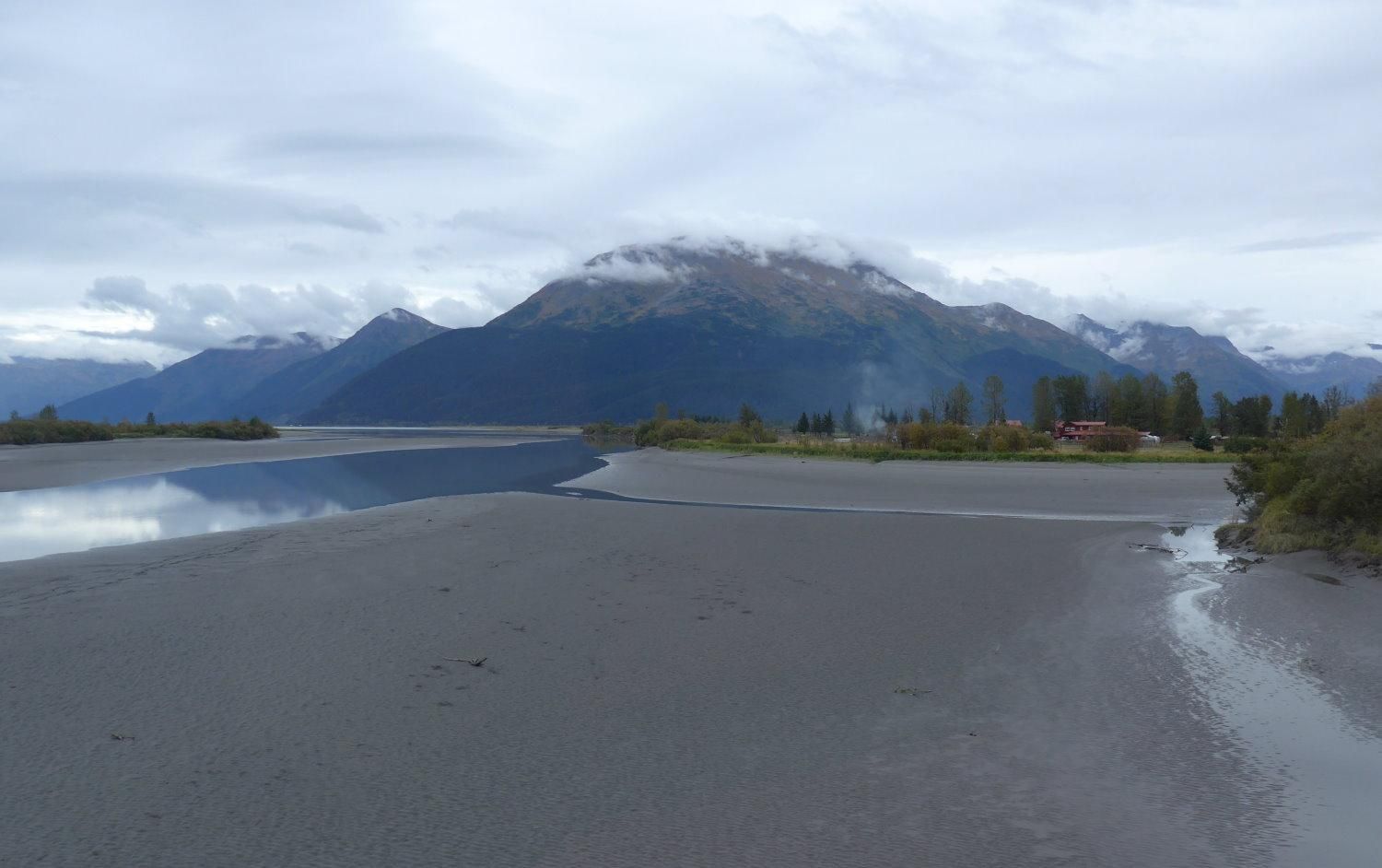 Wir trotzen dem schlechten Wetter und knüpfen uns die Halbinsel Kenai vor. Kaum sind wir am Meer - am Turnagain Arm, um genau zu sein - wird die Szenerie spannend. Die Flut ist am Hereinströmen und bringt gleich ein paar Belugas (Weisswale) mit. Das heisst sie bringt Krill und weitere Leckereien mit, hinter welchen die Wale her sind. Anchorage liegt am Cook Inlet, einer Bucht des Golfs von Alaska, und der Turnagain Arm ist ein Arm dieser Bucht.
