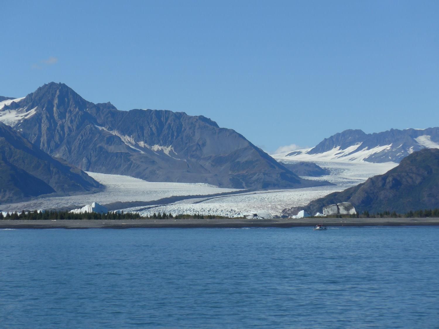 Tatsächlich wird uns für die 5-stündige Schiffstour in der Resurrection Bay ein Prachtstag geboten. Die Cruise ist interessant und gut kommentiert unter anderem von einem Park Ranger. Wir sehen zwei Weisskopfadler, diverse Buckelwale, Seeotter, Seelöwen, Delfinrücken, verschiedene Seevögel inklusive Papageientaucher. Wie üblich sind die Tiere nicht in Reichweite und meist auch nicht in Foto-Zoom-Weite, sodass nur wenige brauchbare Bilder entstehen. Die vereinzelten Wale zeigen sogar ihre Schwanzflossen, aber bis man überhaupt weiss, wo sie nach der letzten Sichtung wieder auftauchen, ist das Spektakel auch schon vorbei. Hauptsache, wir haben es gesehen und die Tier-Wunschliste kann definitiv abgehakt werden.