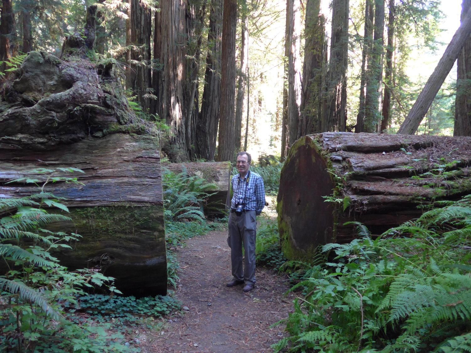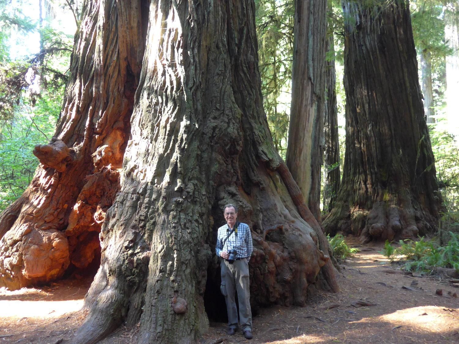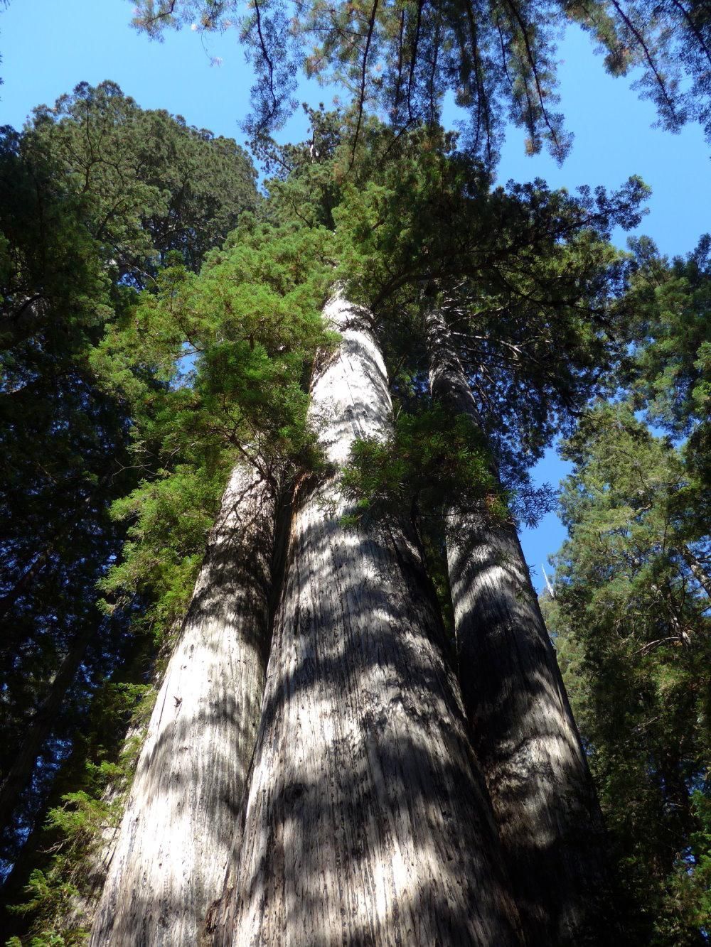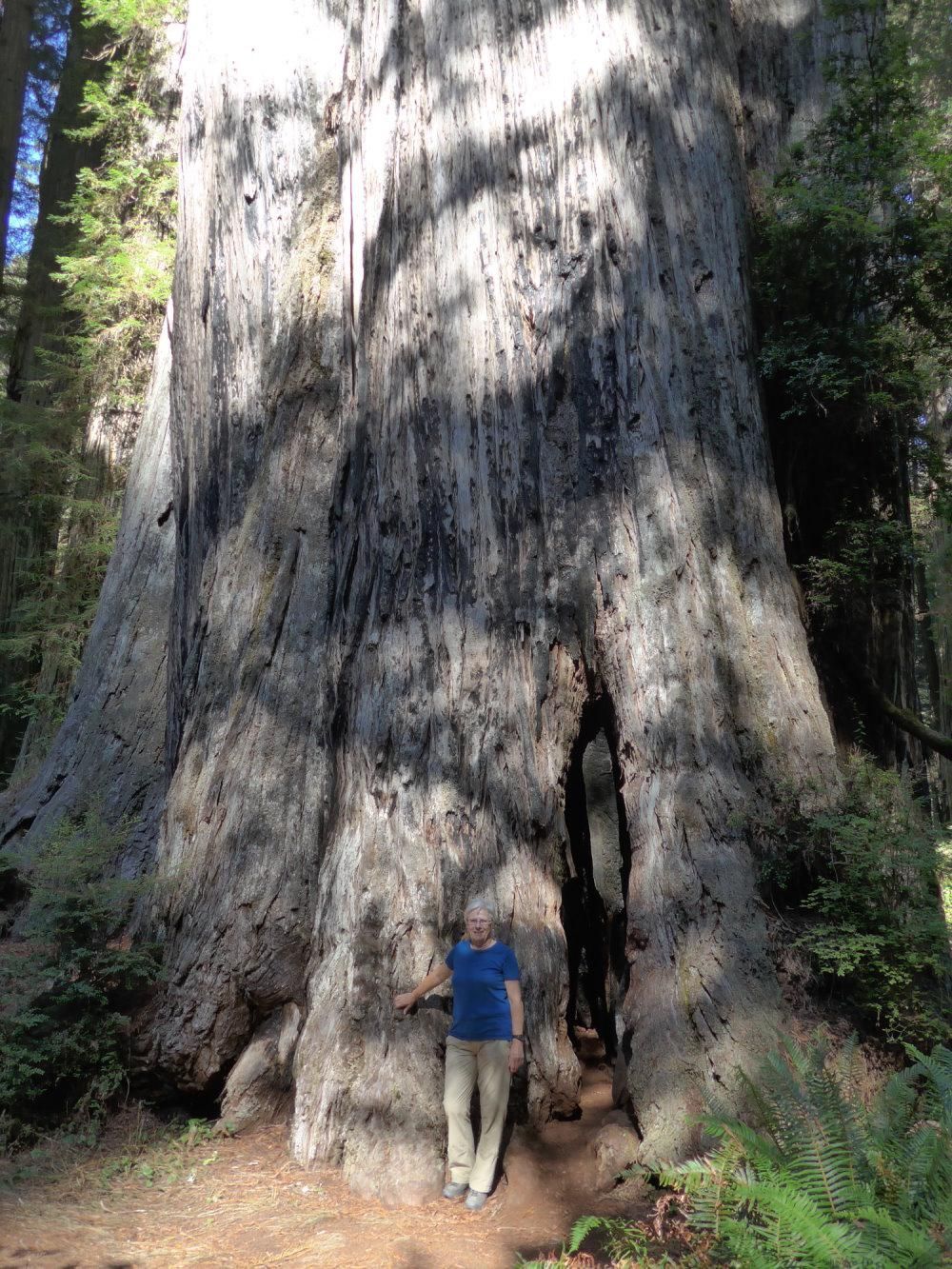 Die kalifornischen Küsten-Redwoods (Mammutbäume) gehören zu den grössten Bäumen der Welt. Die ältesten haben 2000 Jahre auf dem Buckel, die höchsten erreichen ca. 115m und einen Durchmesser am Boden von 7m. Es ist vor allem die Höhe, die bei diesen Küstenbäumen einmalig ist, wohingegen bei ihren Cousins im Sequoia Nationalpark, den wir später besuchen werden, die Dicke Rekordwerte aufweist. Wenn man diese Baumriesen von unten bis oben betrachtet, fällt man beinahe rückwärts um. Und natürlich bringt man niemals einen ganzen auf ein Foto! Wir quartieren uns im Park-Camping ein, unternehmen ein paar Rundwanderungen zu den grössten der Grossen und fühlen uns wie Ameisen.