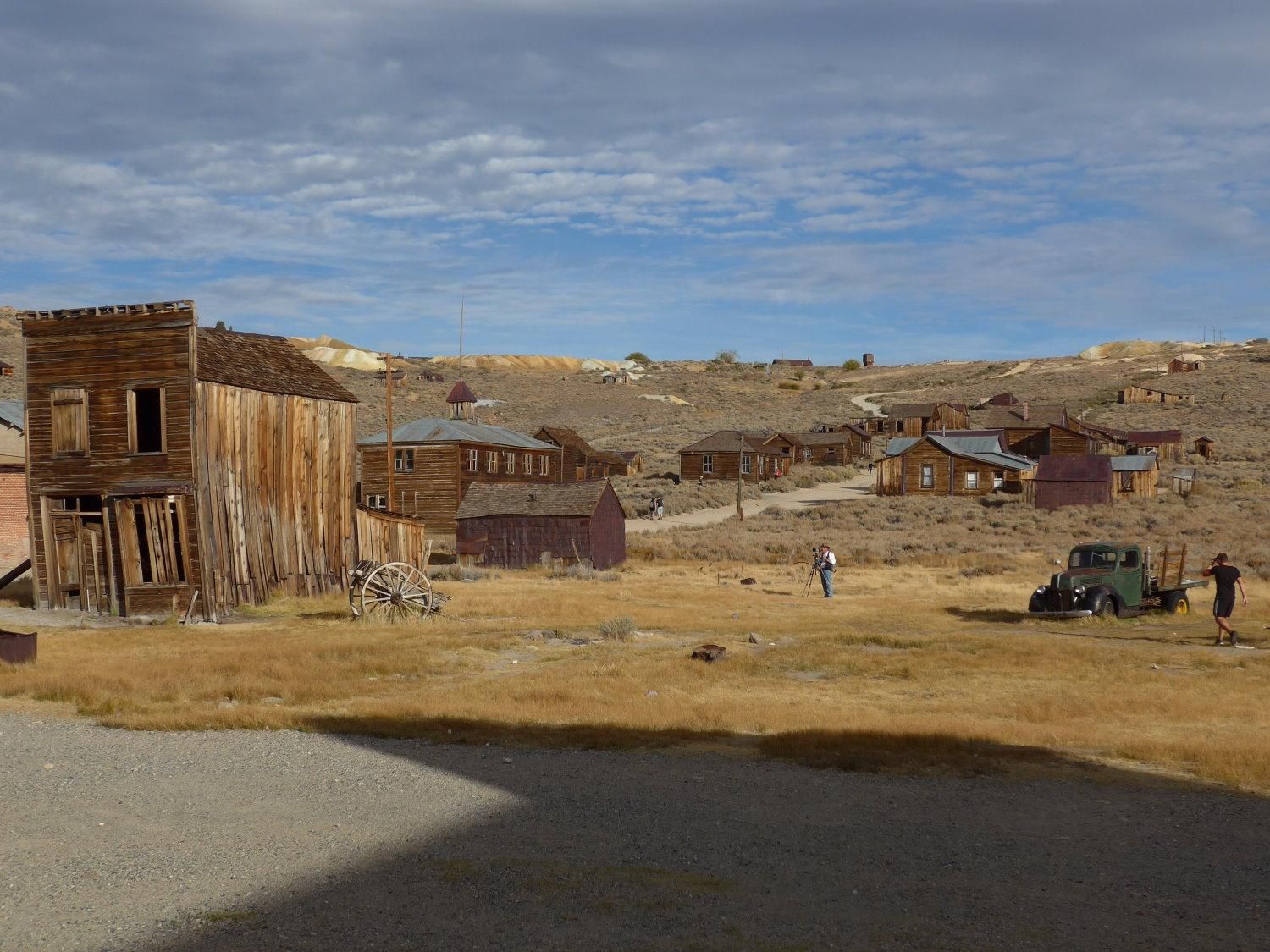 Nachdem an den Westhängen der Sierra Nevada Goldfelder entdeckt worden waren, machte sich ein Mr. Bodey auf Goldsuche an den Osthängen der Bergkette. 1859 wurde er fündig und ein paar Monate später starb er in einem Schneesturm, ohne zu wissen, dass aufgrund seiner Funde eine Stadt entstand, die seinen leicht abgeänderten Namen bekam. Während der kurzen Blüte des Goldabbaus 1877 - 1881 betrug die Einwohnerzahl von Bodie etwa 8‘000. Dann reduzierte sie sich drastisch, aber Gold wurde noch bis 1942 abgebaut. Die Stadt verfiel, viele Häuser wurden Opfer von Feuer und Wettereinflüssen. Der Rest, ca. 5% der Gebäude, blieb aber aufgrund des trockenen Klimas aussergewöhnlich gut erhalten.
