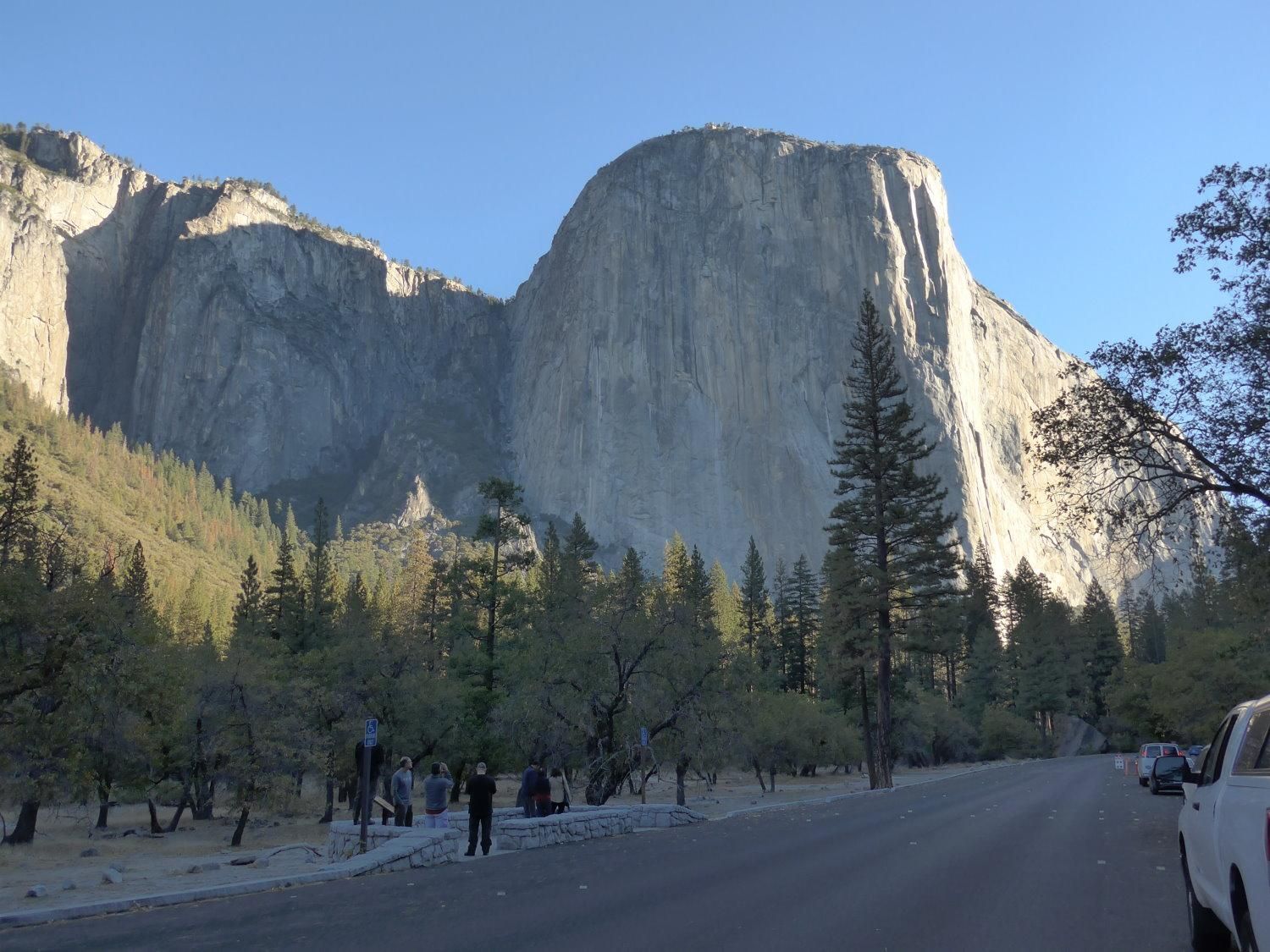 Am nächsten Morgen holt uns der Wecker um 6 Uhr aus dem Schlaf. Wegen der Hitze und des Besucherandrangs wollen wir früh losfahren. Ziel ist das Yosemite Valley, das Kernstück des Parks. Auf dem Weg sehen wir einen überfahrenen Bär am Strassenrand liegen. Gestern war der noch nicht da, das muss in der Nacht passiert sein. Schwarzbären sind nachts leider gut getarnt. Bis jetzt haben wir vereinzelt Rehe und immer wieder kleinere Tiere gesehen, die die Gefahren des Strassenverkehrs nicht kannten. Zum Glück ist uns noch nie eines unter die Räder geraten!