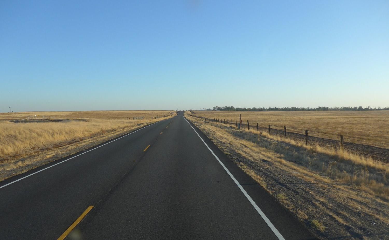 Wieder fahren wir durch die weite, heisse Ebene, die wir schon vor dem Sequoia Park überquert haben. Es ist das kalifornische Längstal, ca. 600 km lang und bis zu 80 km breit, der Obstgarten Amerikas. Die unendlichen Kulturen stehen gut bewässert und deshalb saftig grün in der braunen Landschaft. Die Strassen sind quadratisch angelegt, wir rollen teils in der Nordsüd-, teils in der Ostwest-Richtung kilometerlang schnurgeradeaus und kämpfen gegen den Schlaf.