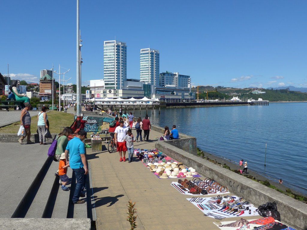 In der Küstenstadt Concepción machen wir mal wieder eine Grossstadterfahrung. Aus dem Reiseführer haben wir die Adresse einer Wäscherei, wo wir unser Bündel abliefern wollen. Waschsalons mit Selbstbedienung haben wir bis jetzt noch nie gesehen, aber die Wäschereien arbeiten in der Regel gut und günstig. Das GPS führt uns an die angegebene Adresse, doch dort gibt es weit und breit keine Lavanderίa. Also fahren wir in die Innenstadt mit der Hoffnung auf einen Parkplatz, um uns nach einer Wäscherei zu erkundigen. Das Erlebnis ist wie gehabt: Viel Verkehr, enge Strassen, keinerlei Parkiermöglichkeit.
