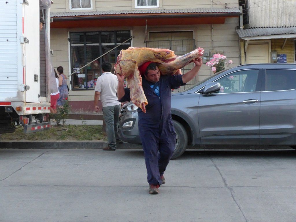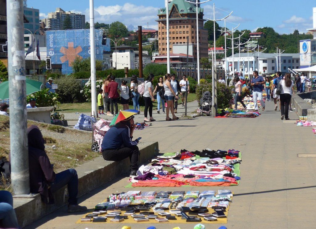 Zufällig finden wir doch eine Parklücke an der Uferstrasse, gewinnen einen ersten Eindruck von Puerto Montt, besorgen Informationen, erledigen Einkäufe und schlendern schwitzend durchs Menschengewühl zurück zum Auto. Etwas ausserhalb der Stadt entdecken wir zu unserer Freude einen schönen Übernachtungsplatz in freier Natur mit Blick auf den Vulkan Calbuco. Hier lassen wir uns gleich für zwei Nächte nieder und besuchen am nächsten Tag noch das Hafenviertel von Puerto Montt.