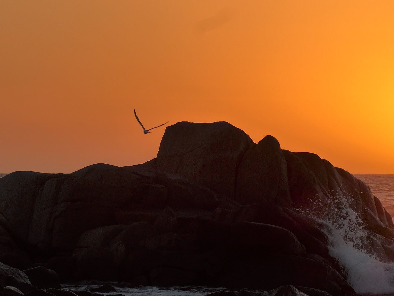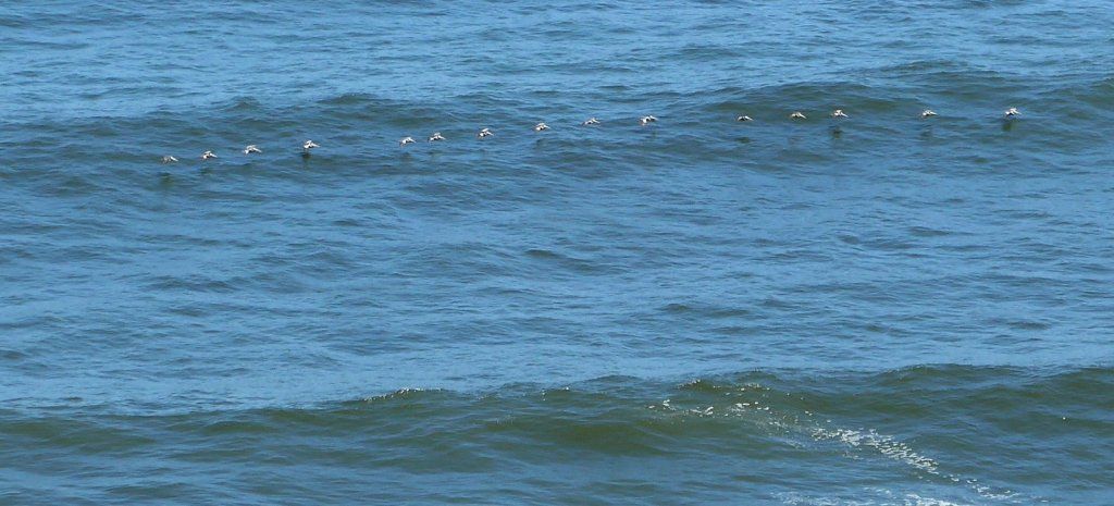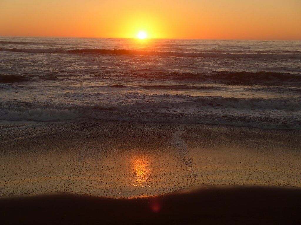 Wir richten uns am einsamen Strand für die Nacht ein und erleben einen Sonnenuntergang aus dem Bilderbuch. Der Pazifik tost, die Wellen überschlagen sich reihenweise. Menschliche Surfer sehen wir keine, gefiederte hingegen schon. Es sind Pelikane, die in Einerkolonne den Aufwind auf der Vorderseite einer hereinströmenden Welle nutzen und solange quer vor der Welle segeln, bis sie sich überschlägt. Dann fliegen sie elegant darüber hinweg zur nächsten Welle.