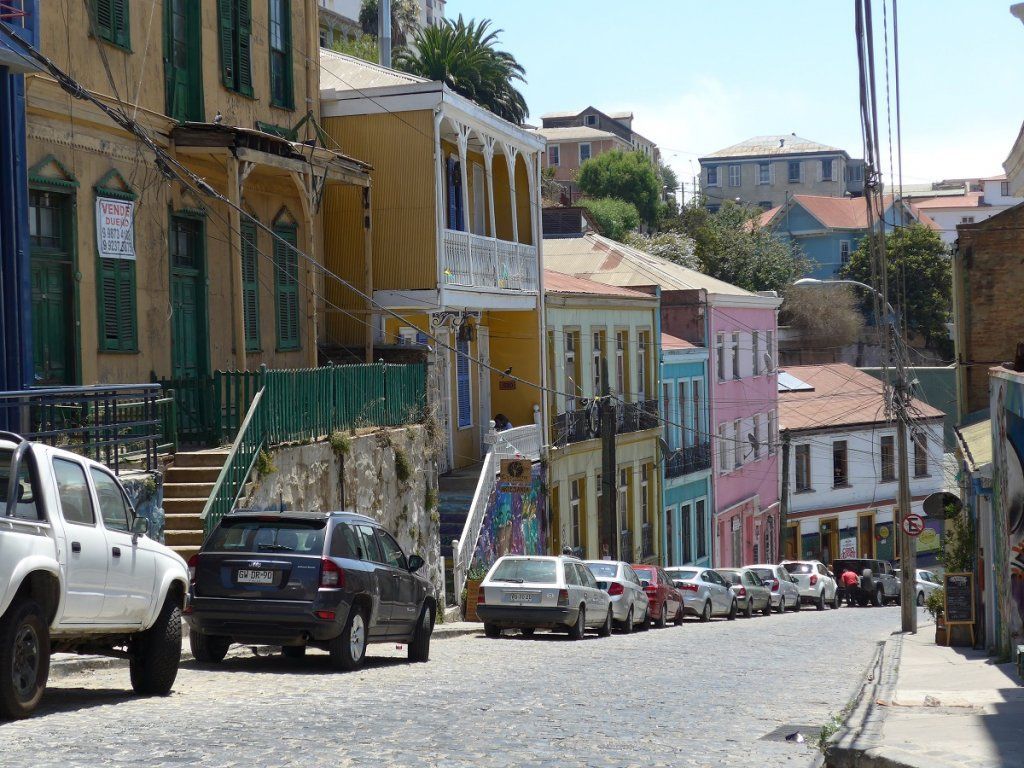 Wegen der Hitze haben wir beschlossen, Santiago nicht zu besuchen. Es herrschen dort unterdessen brutale 40°C. Dafür wollen wir uns die schöne Hafenstadt Valparaίso ansehen. Da man aus Sicherheitsgründen den Übernachtungsplatz sorgfältig aussuchen sollte, haben wir uns aus dem Internet die Adressen der einzigen zwei Campingplätze notiert. Die Stadt klebt an einem steilen Hang und wir sind ein bisschen skeptisch. Unser getreues Navi lotst uns über steile, schmale Strassen hinauf und hinunter genau an die angegebene Adresse. Natürlich hat es dort keine Campingplätze, es hätte auch gar keinen Platz dafür. Der zweite Platz sollte sich nordöstlich der Stadt befinden. Die Fahrt dorthin ist einmal mehr spektakulär, weil sie über die Kordillere führt. Aber das Aussenthermometer steigt und steigt und als wir dort ankommen, wo der Campingplatz sein sollte, zeigt es wieder 35°C an, obschon wir nur etwa 30 km von der Küste entfernt sind. Ein Campingplatz? Gibt es nicht! Wir fragen einen Ortskundigen, der das bestätigt.