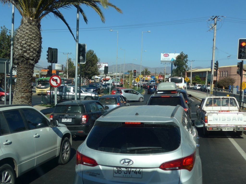 Wir haben mit maximal 1 ½ Stunden Reise gerechnet, aber erstens führt sie durch einige Dörfer und zweitens herrscht im Einzugsgebiet von Vin᷉a del Mar und Valparaίso Stau. So dauert es halt 2 ¼ Stunden, bis wir endlich am Ziel sind.