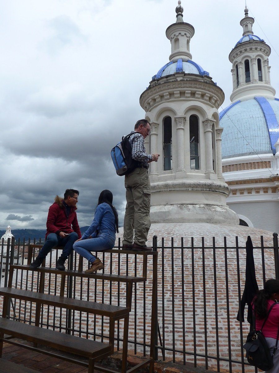 Die Stadt bietet eine der schönsten Ansammlungen kolonialer Architektur in Ecuador: Prächtige Kirchen, gepflasterte Gassen, gesäumt von Kolonialbauten mit verzierten Balkonen. Auf einer sympathischen Mischung aus Campingplatz, Bauernhof und Schrottplatz lassen wir uns für drei Tage nieder. Mit Ausnahme der krähenden Hähne ist es sehr ruhig hier. Es muss mal wieder einiges erledigt werden wie unter anderem Haare schneiden, diverse Putz- und Wascharbeiten, die Organisation einer Tour auf die Galapagos-Inseln.
