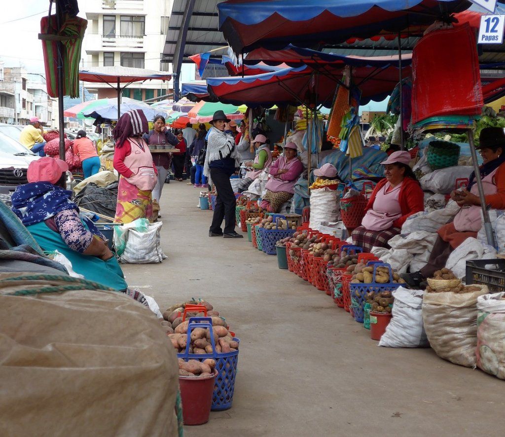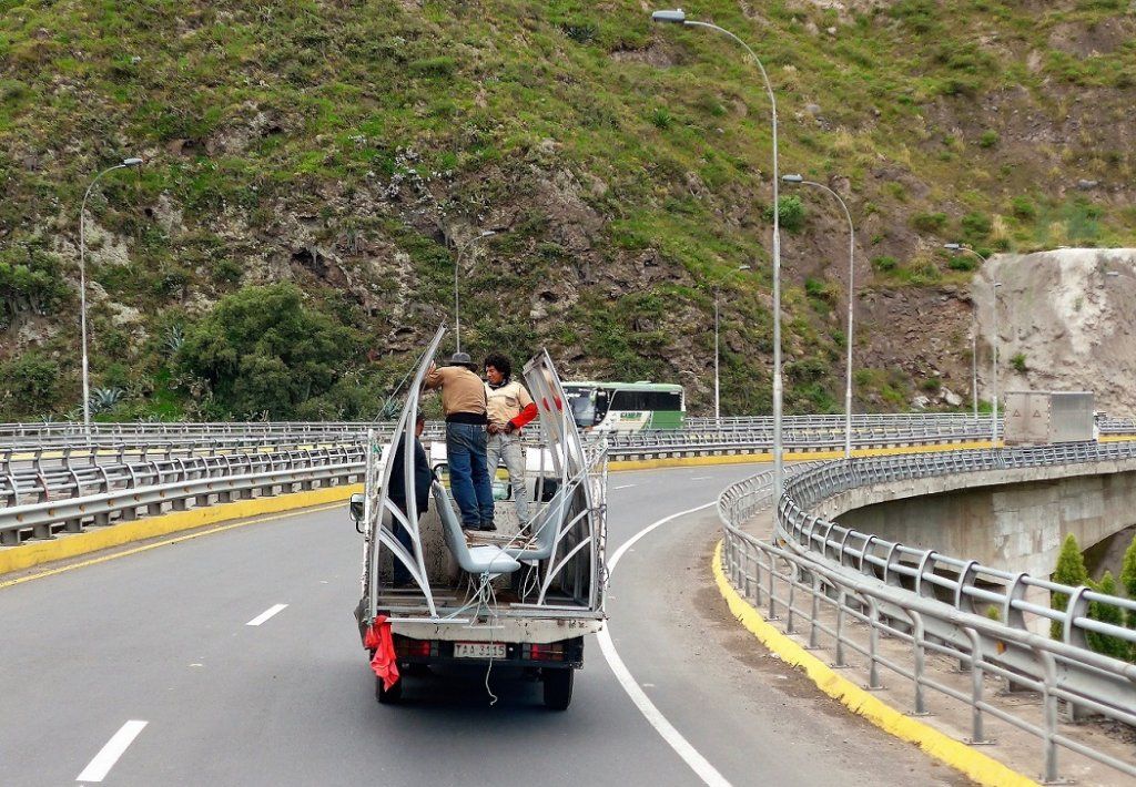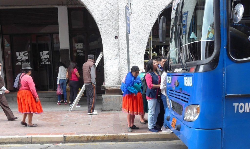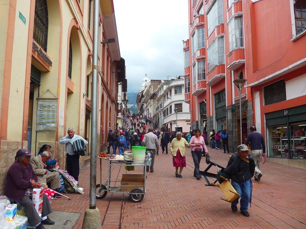 Das hatten wir mangels Parkplatz sowieso im Sinn. Als wir eine Dreiviertelstunde später aus dem Taxi steigen, laufen wir diesem gleichen Polizisten wieder in die Arme. Er lacht und freut sich, dass wir seine Anweisung befolgt haben. Dann will er wissen, wohin wir möchten. Geldwechseln? Kein Problem, wir sollen ihm folgen. Mit einer kleinen Handbewegung hält er den dichten Verkehr an, damit wir die Strasse queren können. Dasselbe praktiziert er auch bei einem Rotlicht, das heisst, er hält die Autos an, die Grün haben und führt uns bei Rot über die Strasse. Wir kommen uns vor, als wären wir auf Staatsbesuch! In der überfüllten Bank steuert er zielgerichtet zum zuständigen Beamten und fragt, ob das Wechselgeschäft hier abgewickelt werden könne. Auf die negative Antwort des Beamten führt uns der Polizist noch zu einer zweiten Bank und anschliessend in eine Wechselstube. Erfolglos. Niemand will Soles akzeptieren, gewechselt werden ausschliesslich Euros. Wir sollen das am Flughafen in Quito versuchen, heisst es. Dann verabschieden wir uns mit bestem Dank vom Freund und Helfer in Uniform und fussen ohne Eskorte weiter.