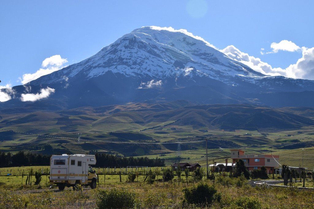 Bis zum Abflug auf die Galapagos-Inseln haben wir genügend Zeit, den Weg nach Quito in kurze Etappen zu unterteilen. Die Panamericana zieht durch die majestätische Gebirgswelt Zentralecuadors und wird hier «Strasse der Vulkane» genannt. Leider sehen wir mehr Strasse als Vulkane, weil die Wolkendecke meistens zu tief hängt. Aber ganz leer gehen wir trotzdem nicht aus. Die erste Nacht verbringen wir auf 3600m am Fusse des 6310m hohen Chimborazo, der sich kurz vor Sonnenuntergang in voller Grösse zeigt. Auch die Spitze seines kleineren Nachbarn, des Carihuairazo, sticht aus dem Nebel und erinnert ein wenig ans Matterhorn.