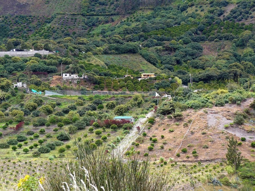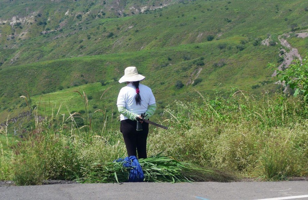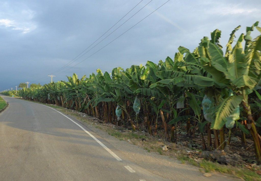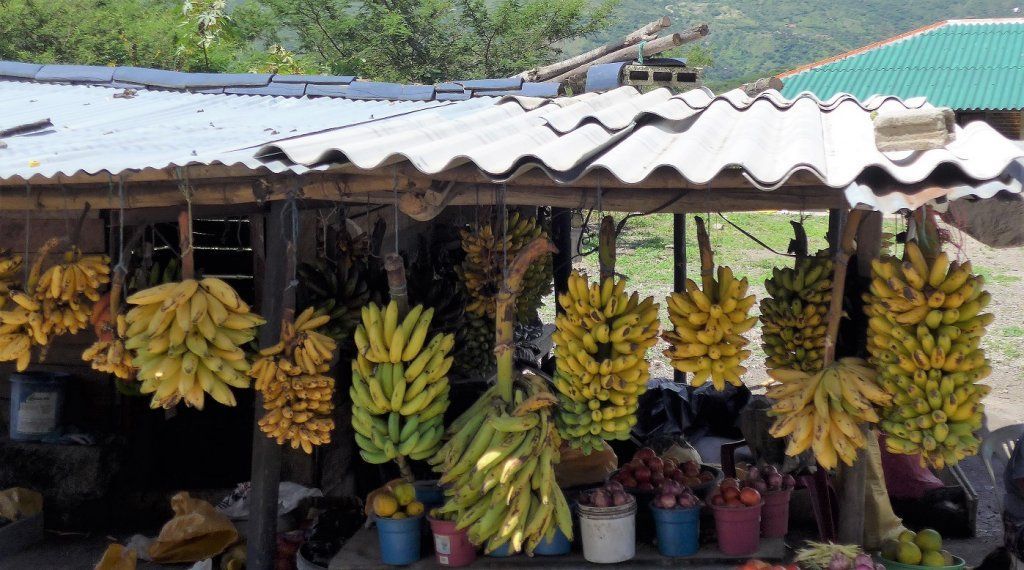 Im Weiteren fallen uns nicht enden wollende Bananenplantagen auf. Da kommen sie also her, die Bananen aus Ecuador. Unsere Route führt schon bald wieder hinauf in die Anden durch üppigen Urwald, wo ebenfalls Bananenpalmen und andere tropischen Gewächse im Überfluss gedeihen. Die Bauern ziehen mit ihren Macheten los und ernten, was es zu ernten gibt. Am Strassenrand reihen sich Verkaufsstände mit Bananen, Papayas, Mangos, Zitrusfrüchten etc.