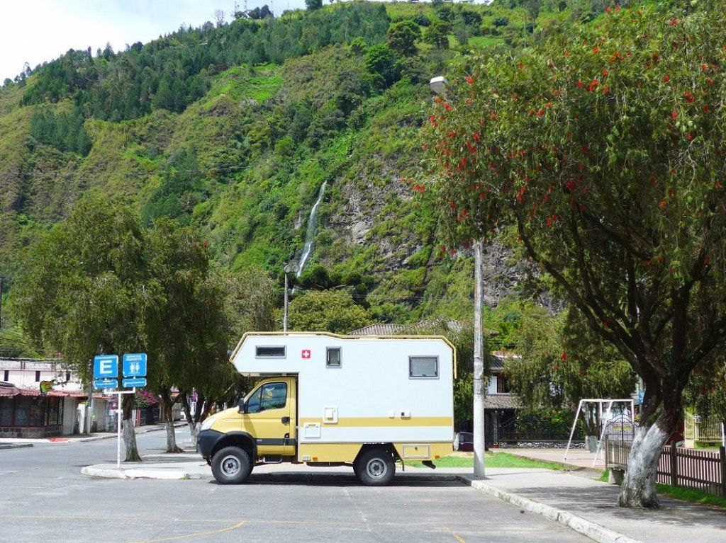 Es sind rund 250 gebirgige Kilometer bis zur kolumbianischen Grenze, für die wir uns Zeit nehmen. Kurz vor der Stadt Otavalo wird’s dunkel und regnerisch. Wir fragen bei einer Tankstelle, erhalten aber keine Erlaubnis für eine Übernachtung. So fahren wir zu einem Campingplatz oberhalb der Stadt, der vor ein paar Jahren noch in Betrieb war... Zum Glück sieht uns ein Mann vor dem geschlossenen Tor und empfiehlt uns den grossen Parkplatz mitten in der Stadt. Wir erreichen ihn bei Regen und Dunkelheit und sind froh, einen bewachten und relativ ruhigen Schlafplatz zu haben.