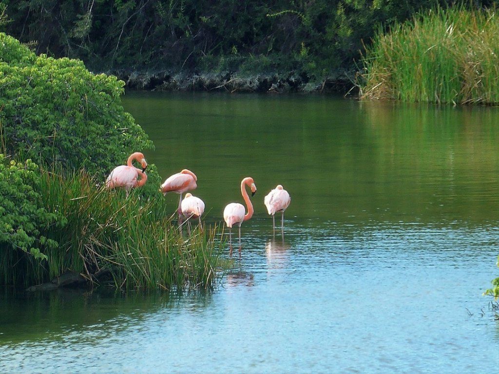 Wieder etwas südlich des Äquators fahren wir zu einem privaten Parkplatz in der Nähe des Flughafens Quito, den uns das Reisebüro empfohlen hat. Dort können wir das Wohnmobil während der Galapagos-Tour stehen lassen und werden zudem vom Besitzer des Platzes frühmorgens um 5 Uhr zum Flughafen chauffiert und nach einer Woche wieder abgeholt. Der Platz wäre durchaus in Ordnung, wenn wir ihn nicht mit freilebenden Hühnern, einem krähenden Hahn, einem Truthahn, einem Pfau, mehreren Pferden und Hunden teilen müssten und fast bei jedem Schritt aus dem Haus in irgendeine der Hinterlassenschaften treten würden.