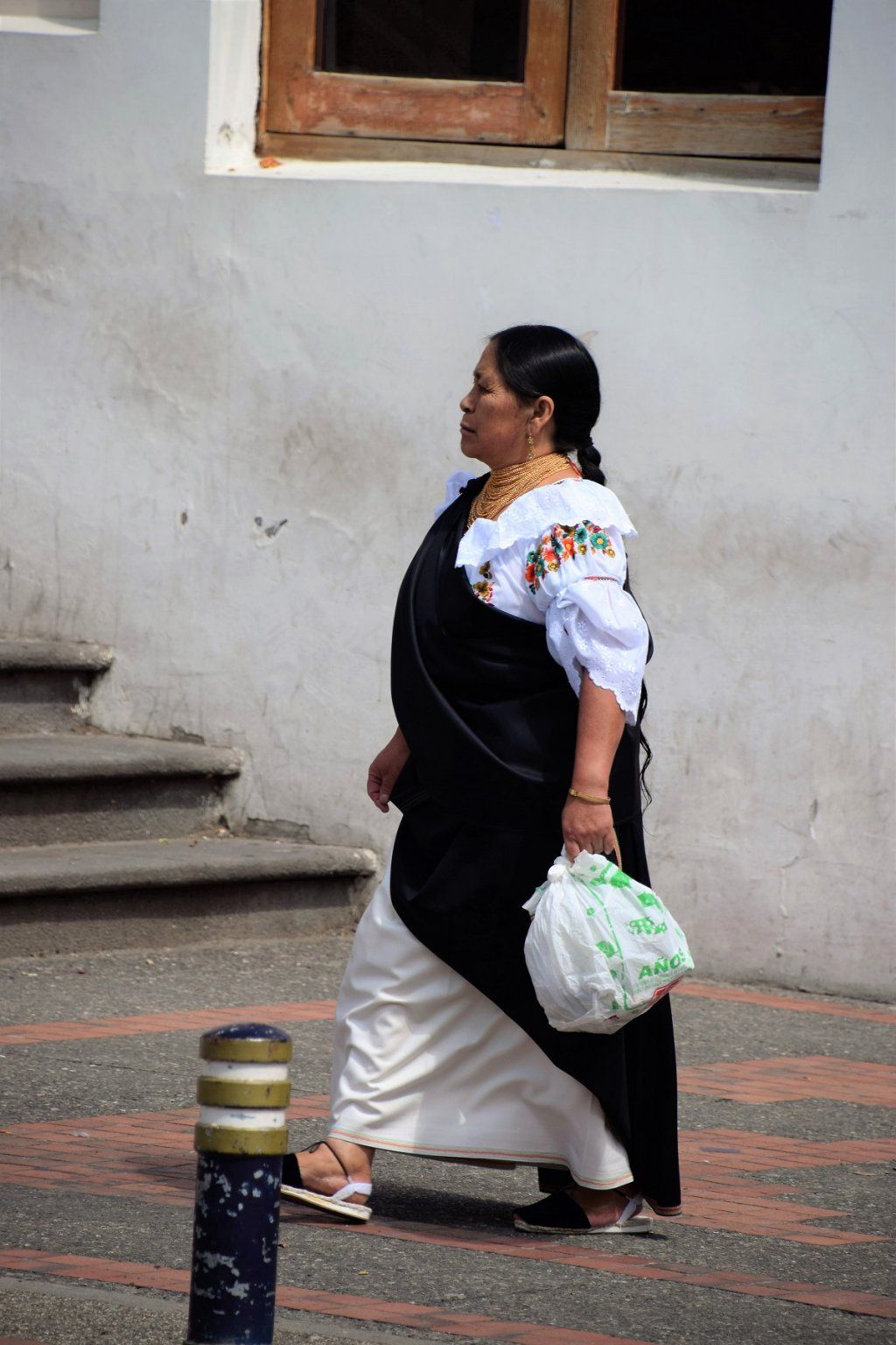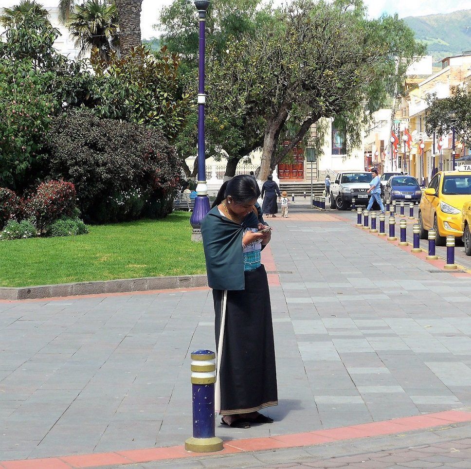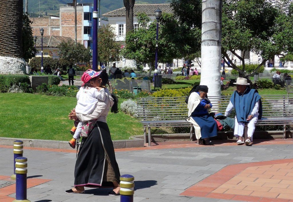 Die Otavalo-Indianer unterscheiden sich von den anderen Gruppen durch ihre äussere Erscheinung. Sie sind noch kleiner gewachsen, vor allem die älteren Leute reichen uns höchstens bis zur Schulter. Auffallend bei den Männern sind die langen, zu einem Zopf geflochtenen Haare. Die Frauen tragen einen weissen Flanellrock und darüber einen dunklen, seitlich offenen Überrock, der bis an die Knöchel reicht. Die meist weisse Bluse ist mit Blumenmustern bestickt und oft wird ein dunkler Umhang über die Schulter geworfen. Es sieht sehr festlich und elegant aus.