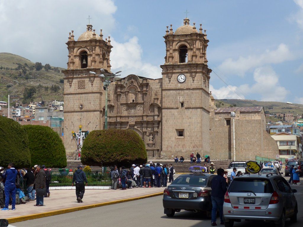 Die Fahrt nach Puno ist wiederum landschaftlich schön, manchmal mit weitem Blick über den riesigen Titicacasee. Am nächsten Morgen kommen wir nicht darum herum, uns einmal mehr ins Chaos einer südamerikanischen Stadt zu stürzen. Die vom Zöllner erhaltene Adresse ist etwas dürftig: Im Mercado Vea habe es eine Bank, die Autoversicherungen abschliesse. Wir fragen uns nach diesem Mercado Vea durch und stehen um 9 Uhr vor verschlossenen Türen. Der Markt öffnet erst in einer Stunde. Genau genommen öffnet er schon um 9 Uhr, aber wir merken erst am folgenden Tag, dass in Peru die Uhren um eine Stunde zurückgestellt werden müssen...!