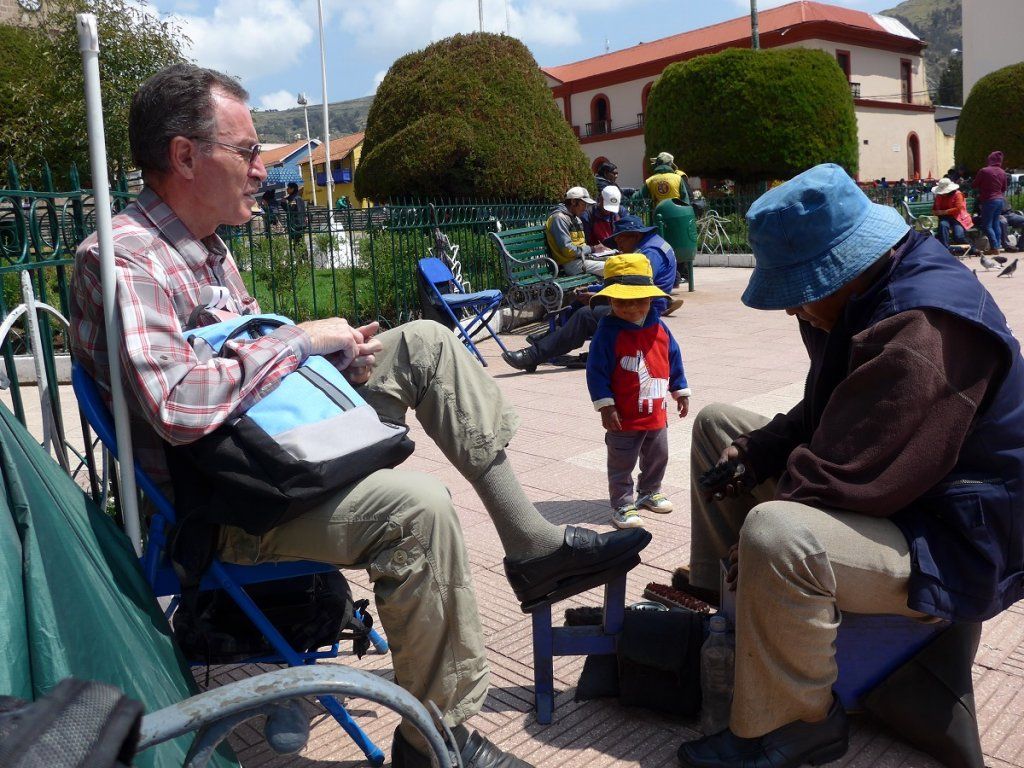 Nun haben wir Zeit und Musse, uns auf dem schönen Hauptplatz umzusehen, das bunte Treiben zu beobachten und uns die Schuhe putzen zu lassen. Nach einer feinen Pizza und dem Erledigen des Lebensmitteleinkaufs hält uns aber nichts mehr in der Stadt zurück. Wir fahren ein Stück weiter und finden ein erholsames Schlafplätzchen am Ufer eines Flusses.