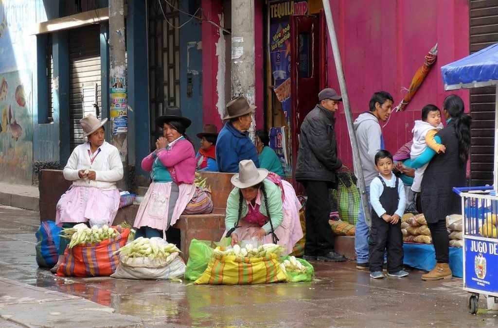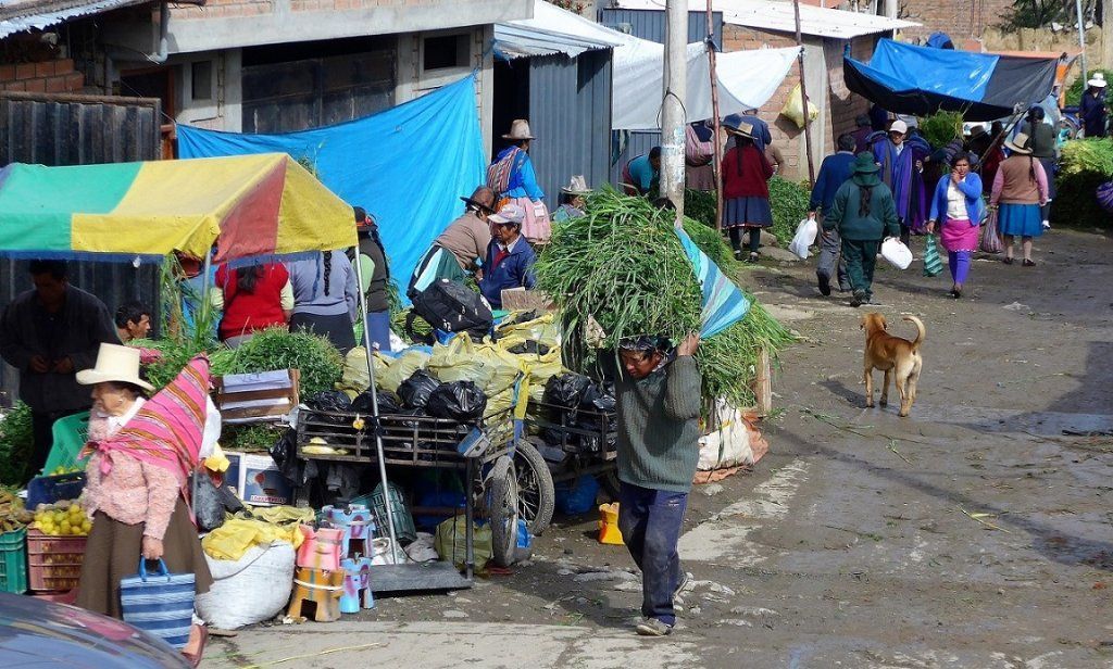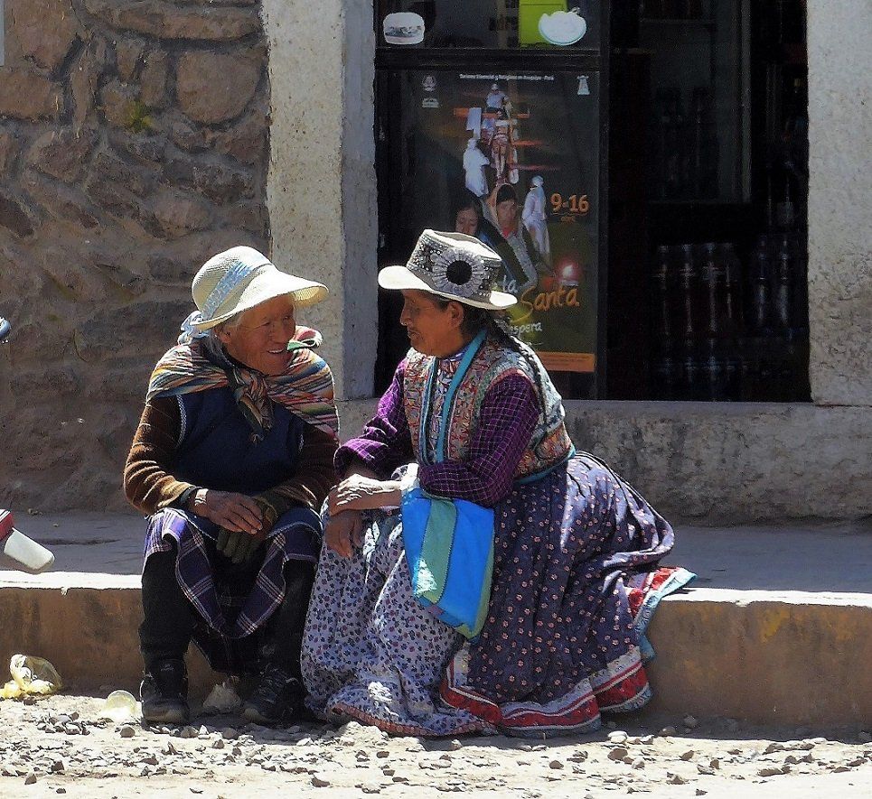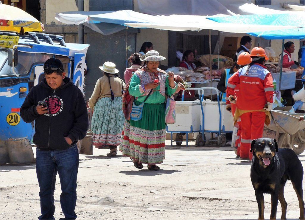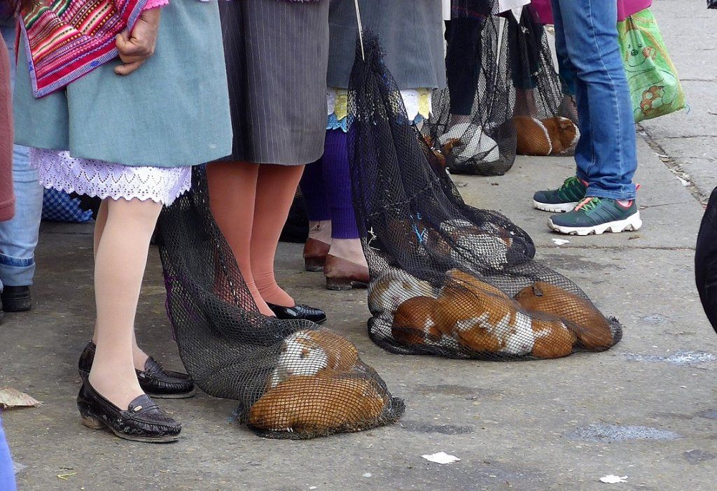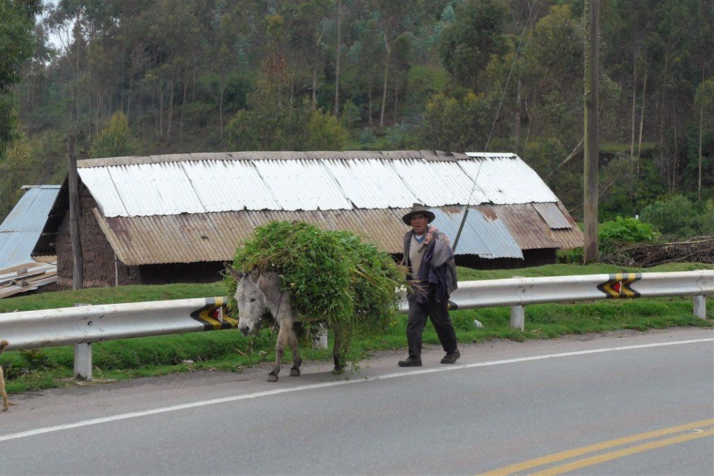 Im Bergdorf auf 3000m geraten wir am nächsten Morgen mitten in ein emsiges Markttreiben, ein Schauspiel mit hohem Unterhaltungswert. Auffallend sind die vielen grossen Gras- und Kleebündel, die zum Verkauf angeboten werden. Das wundert mich, denn die Tiere suchen ihr Futter doch selber auf der Weide. Ich erkundige mich nach dem Verwendungszweck und werde aufgeklärt, das sei für die ‘cuy’. Aha, das sind die Meerschweinchen, die damit gemästet werden, bis sie am Spiess landen! Andere Länder, andere Sitten eben, wir essen schliesslich auch herzige Chüngel. Als wir dann aber Frauen sehen, die lebende Meerschweinchen in Netzen zum Verkauf anbieten, tun uns die Tierchen echt leid. Wie diese Delikatesse schmeckt, wollen wir gar nicht wissen!